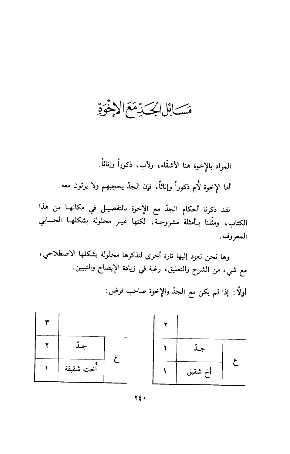 لقد ذكرنا أحكام الجد مع الإخوة بالتفصيل في مكانها من هذا الكتاب، ومثلنا بأمثلة مشروحة، لكنها غير محلولة بشكلها الحسابي المعروف.
