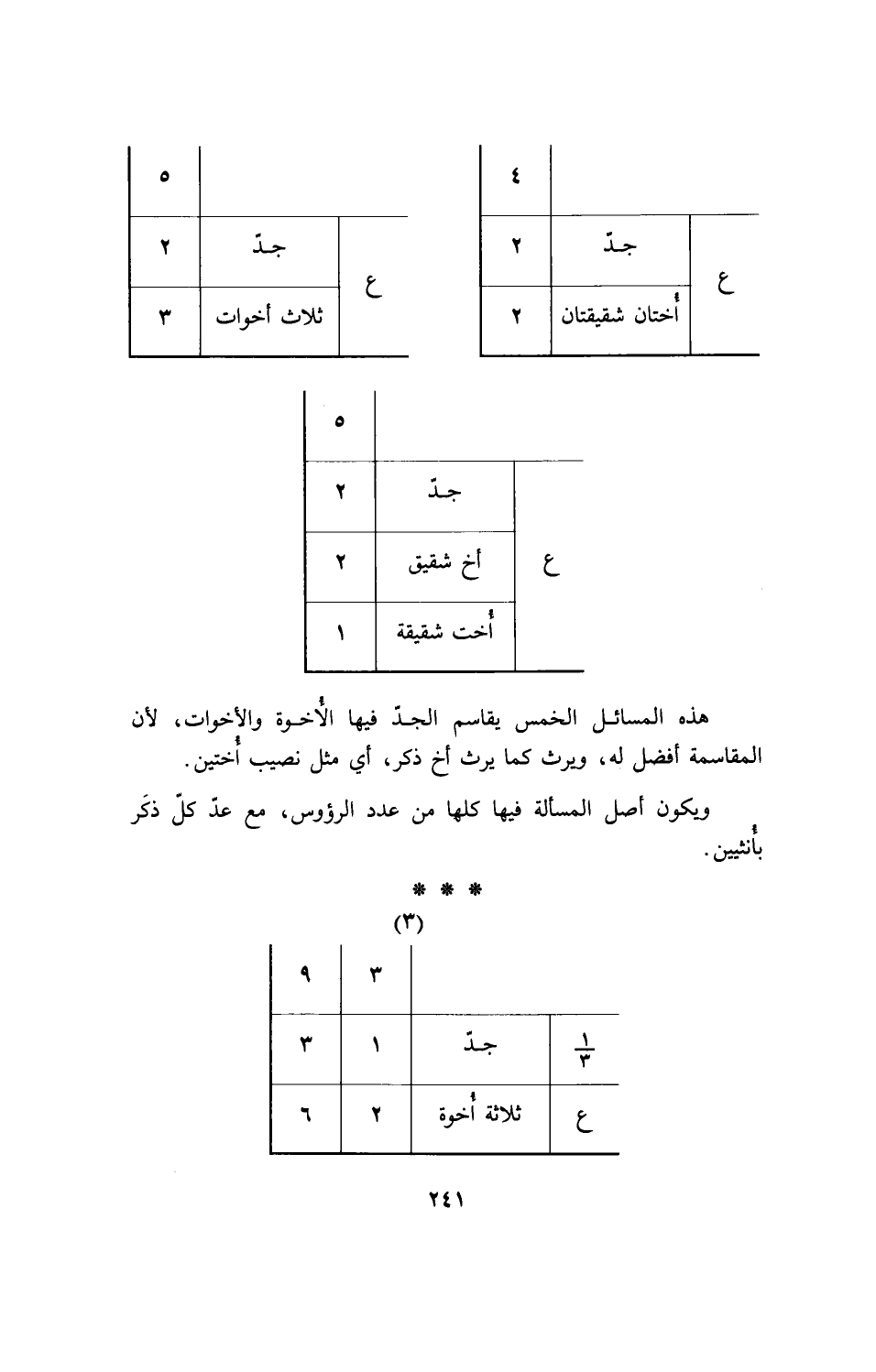 هذه المسائل الخمس يقاسم الجد فيها الأخوة والأخوات، لأن المقاسمة أفضل له، ويرث كما يرث أخ ذكر، أي مثل نصيب أختين.