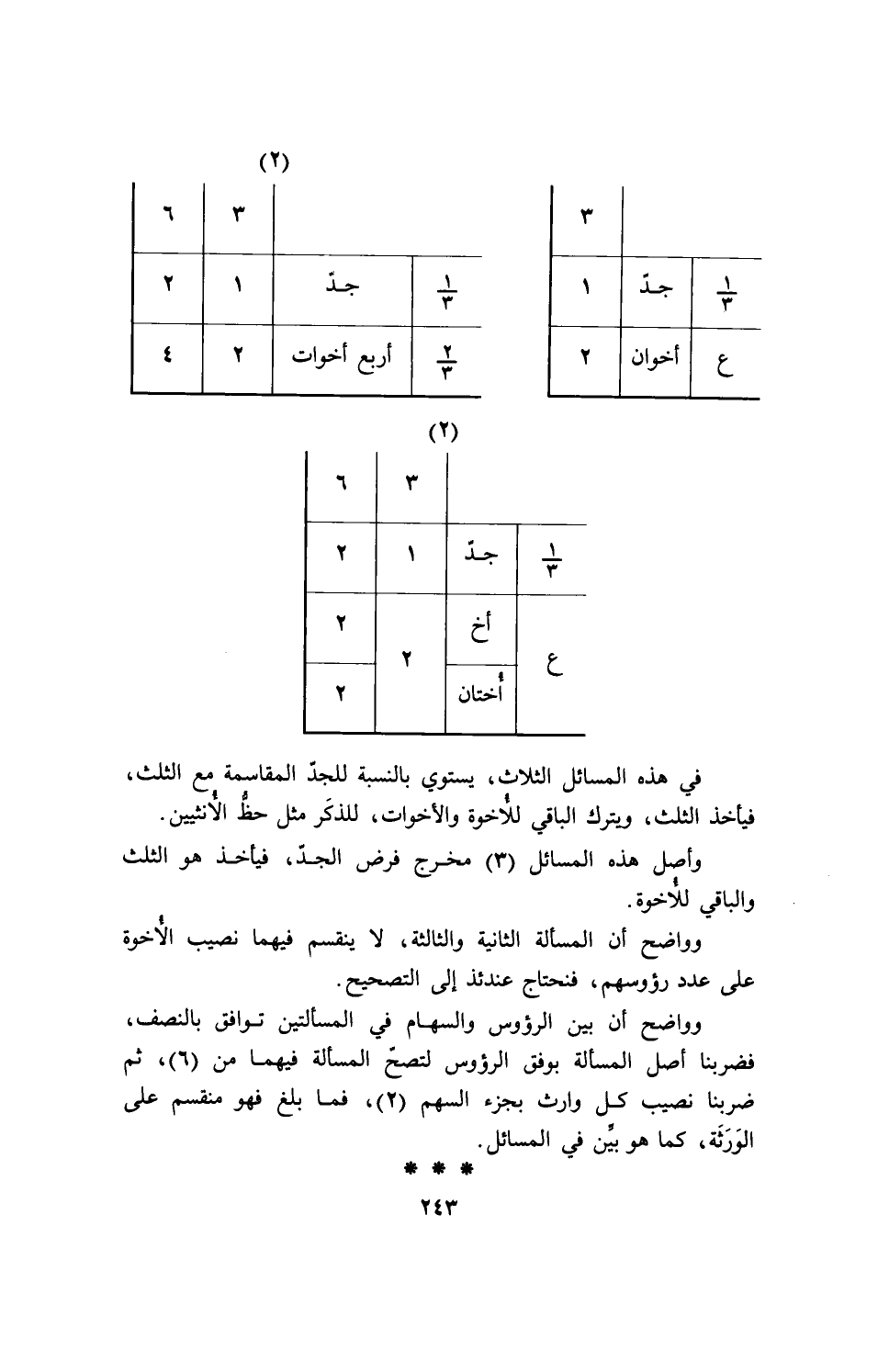 وأصل هذه المسائل (3) مخرج فرض الجد، فيأخذ هو الثلث والباقي للأخوة.