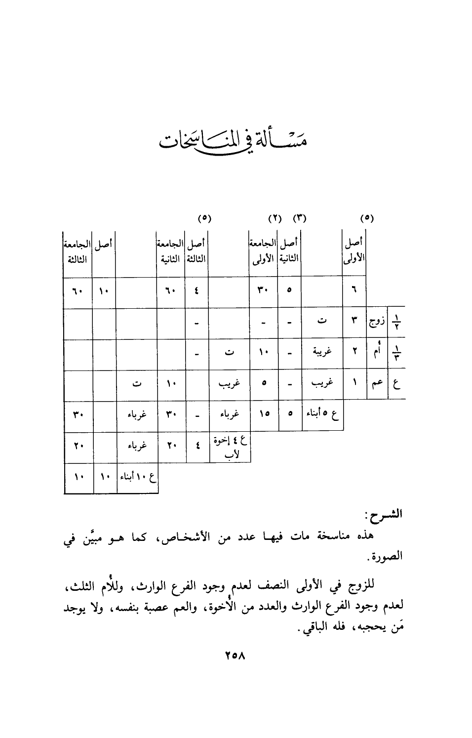 هذه مناسخة مات فيها عدد من الأشخاص، كما هو مبين في الصورة.