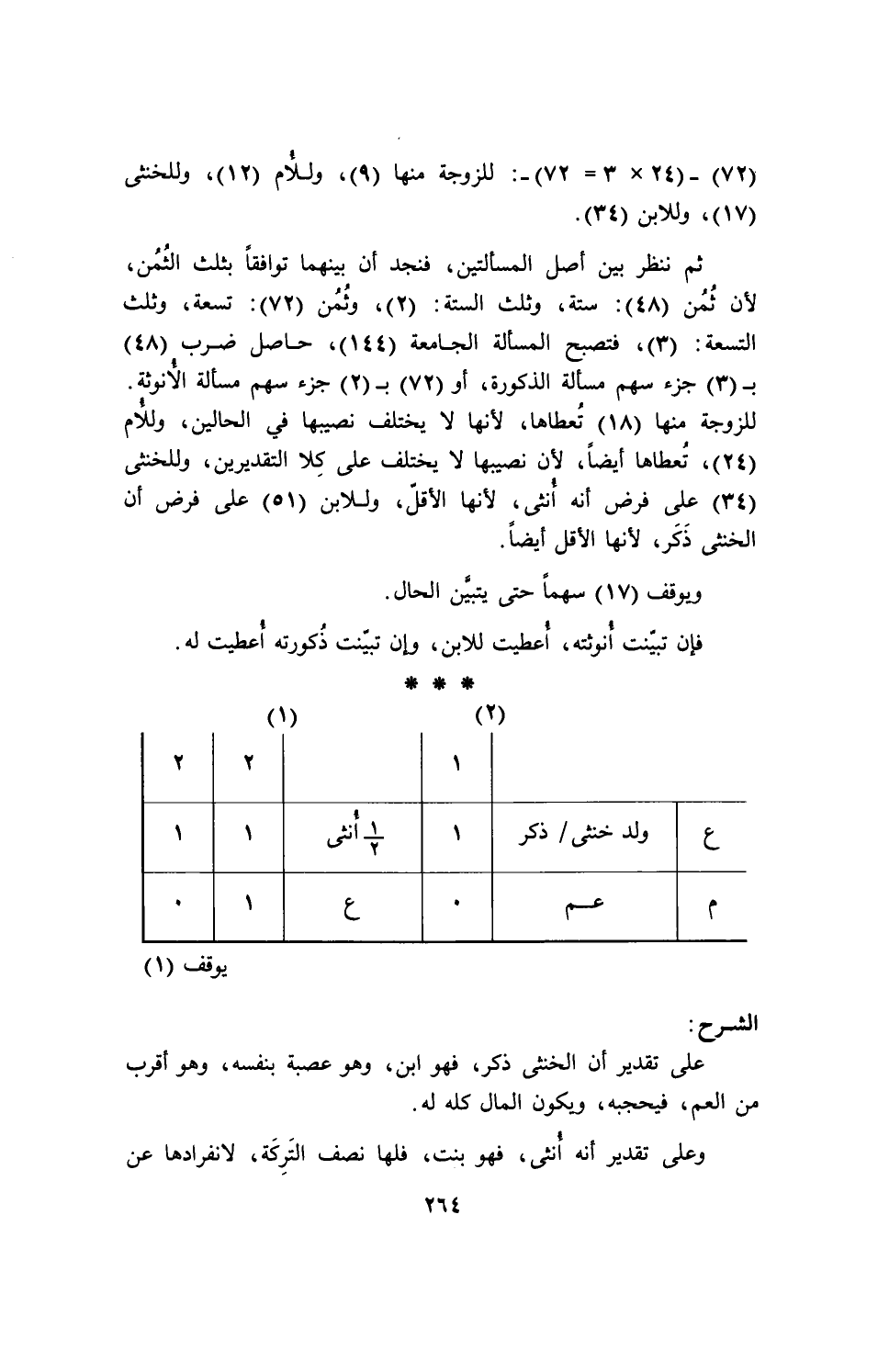 (72) - (24×3=72) -: للزوجة منها (9)، وللأم (12)، وللخنثى (17)، (34).
