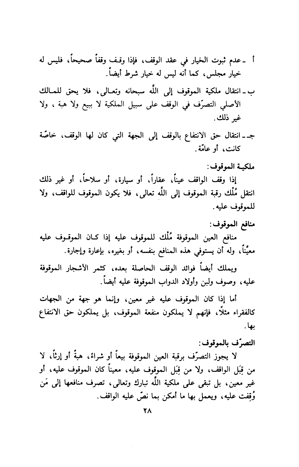 ب انتقال ملكية الموقوف إلى الله سبحانه وتعالى، فلا يحق للمالك الأصلي التصرّف في الوقف على سبيل الملكية لا بيع ولا هبة، ولا غير ذلك.