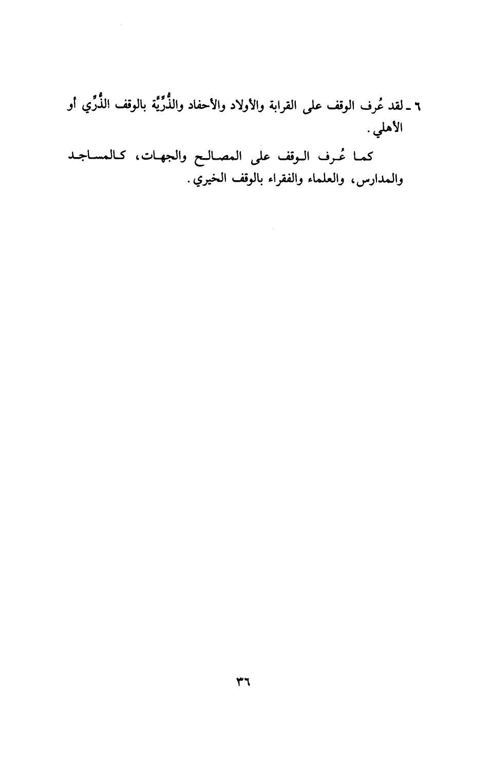 6 - لقد عُرف الوقف على القرابة والأولاد والأحفاد والذرية بالوقف الذري أو الأهلي.