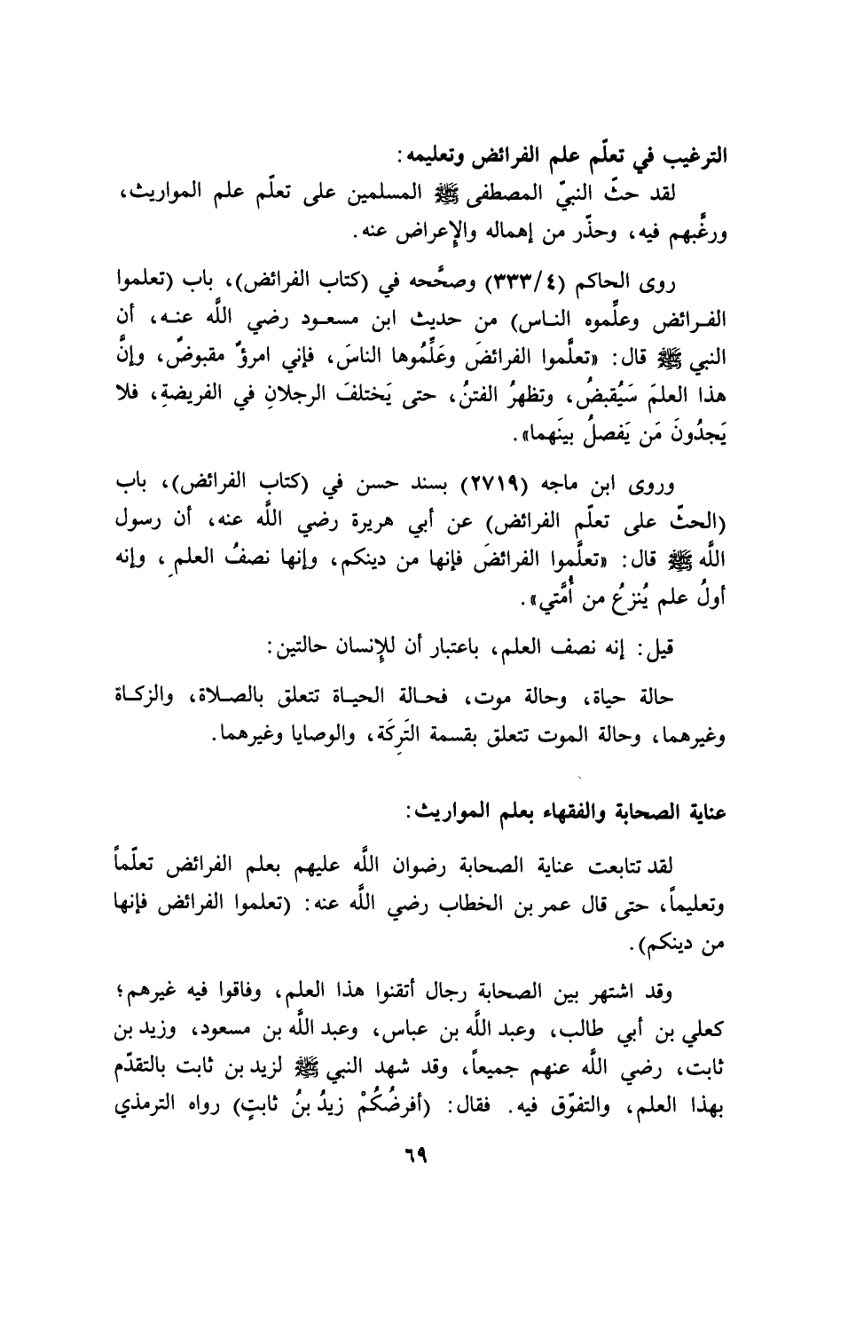 الترغيب في تعلم علم الفرائض وتعليمه: