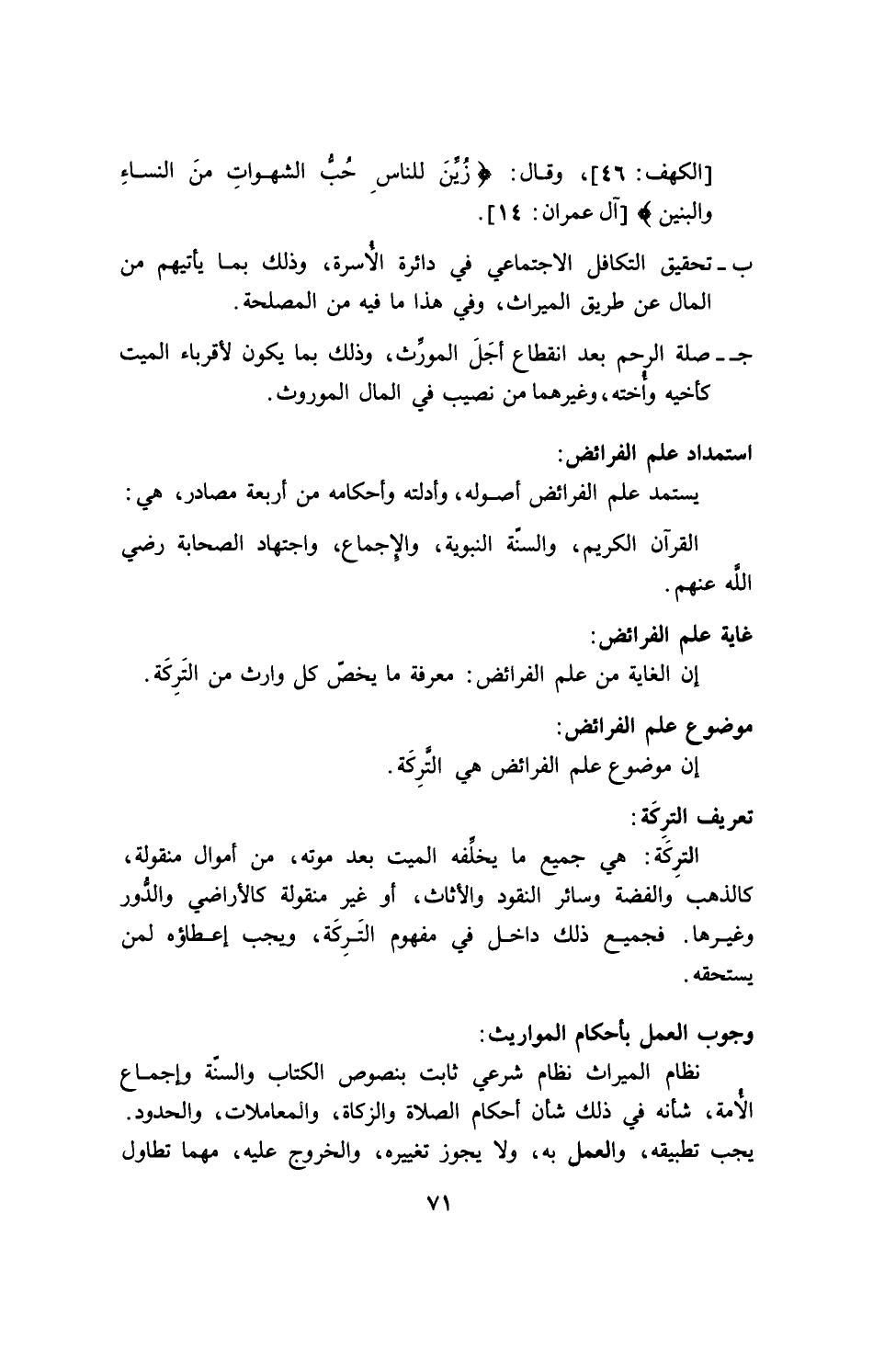 إن موضوع علم الفرائض هي التركة.