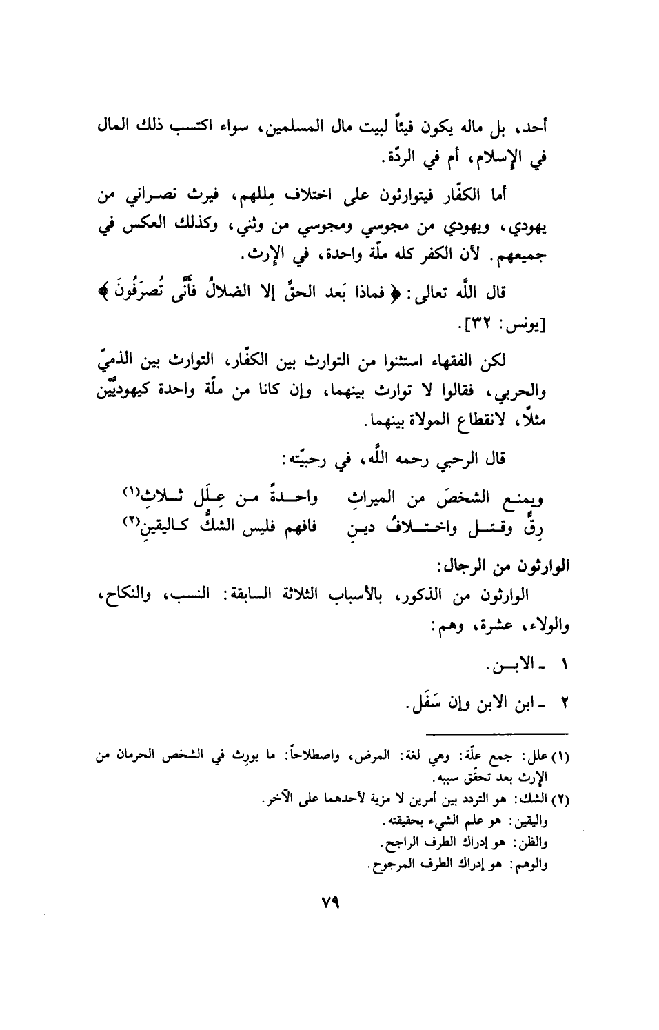 (¬1) علل: جمع علة: وهي لغة: المرض، واصطلاحاً: ما يورث في الشخص الحرمان من الإرث بعد تحقق سببه.