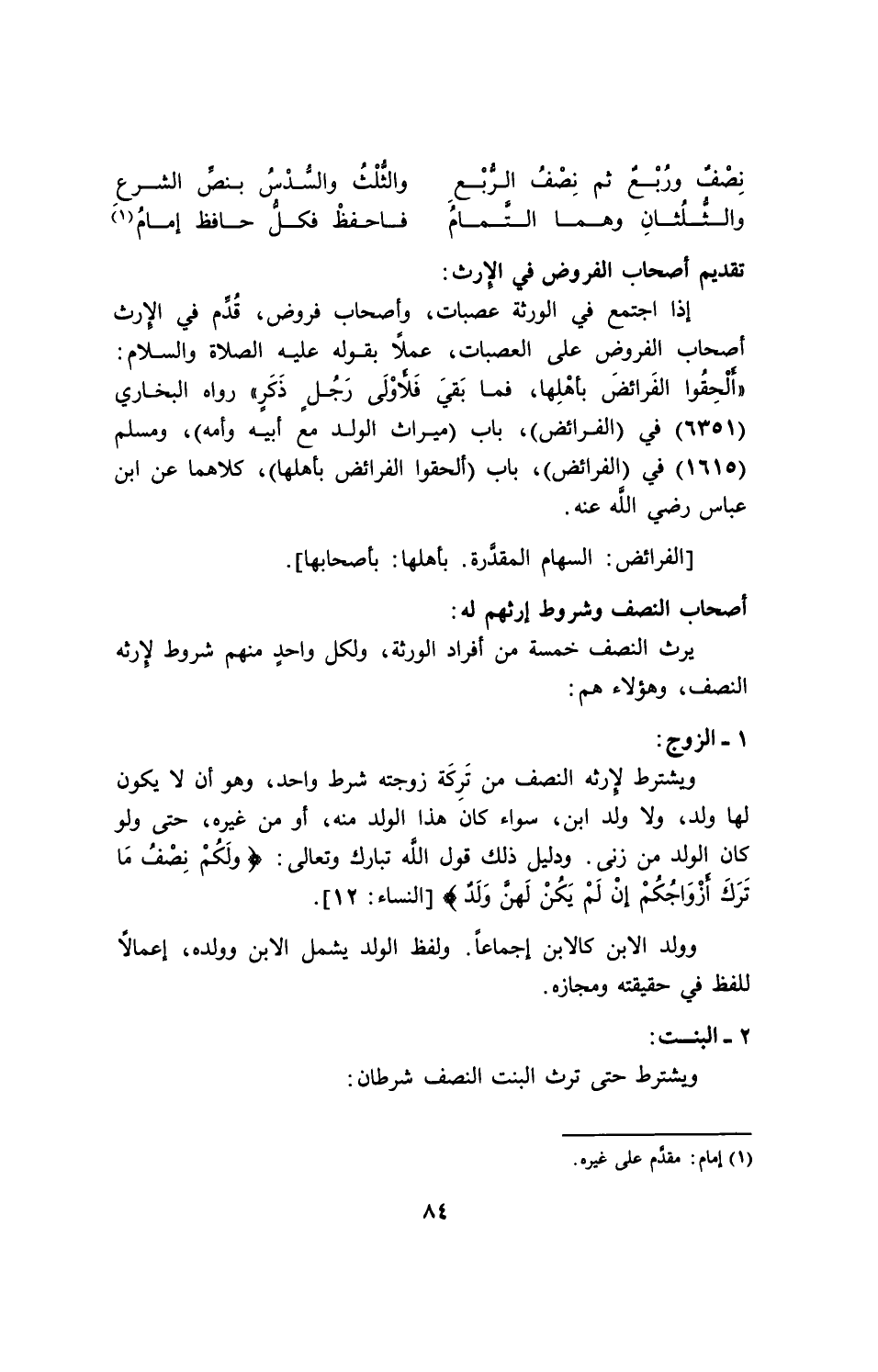 نصف وربع ثم نصف الربع ... والثلث والسدس بنص الشرع