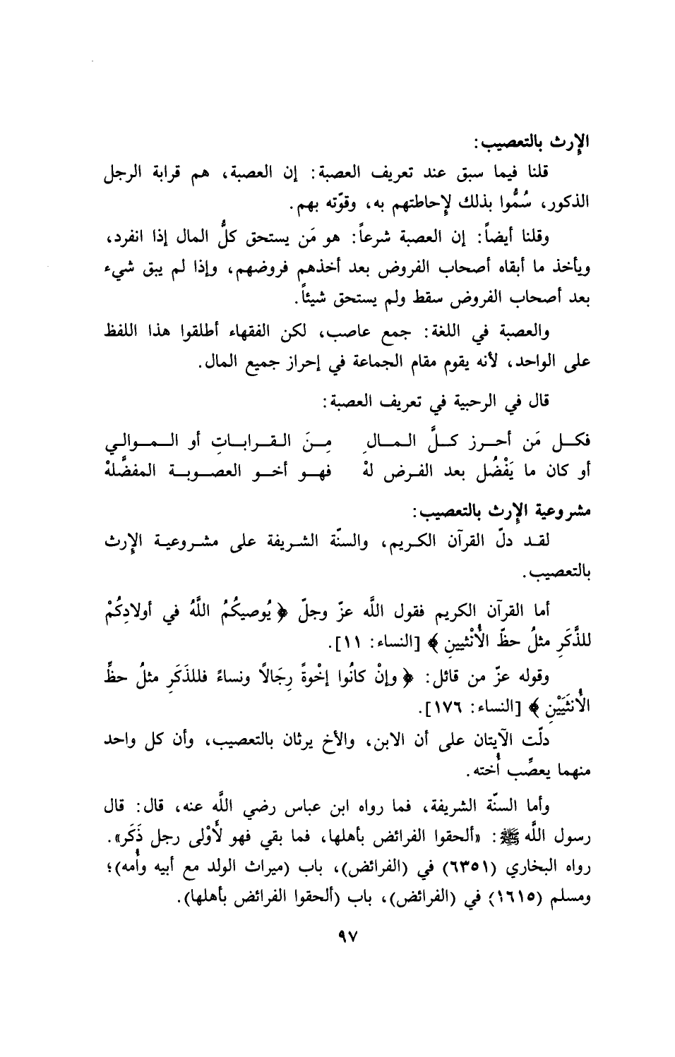 مشروعية الإرث بالتعصيب:
