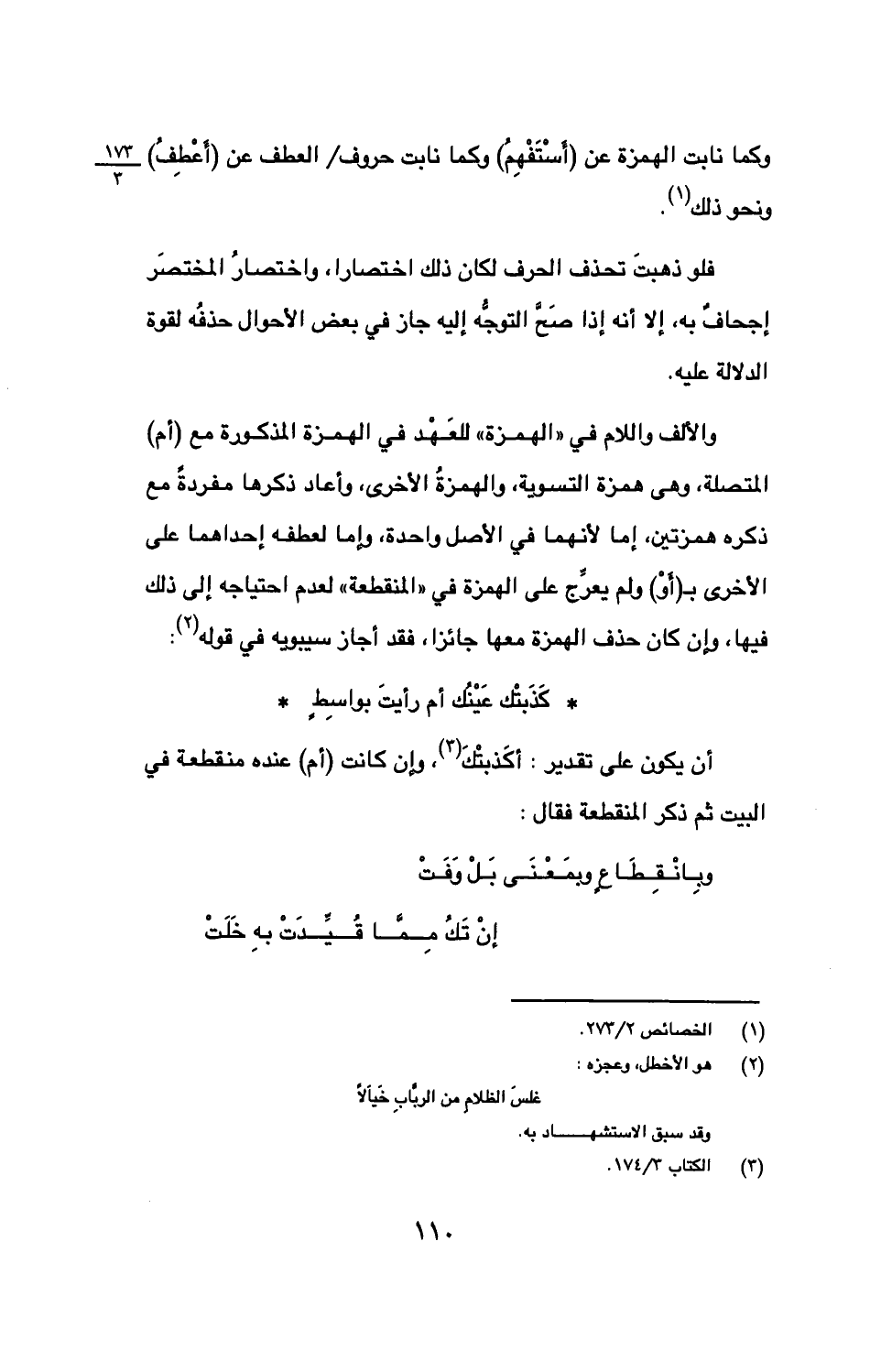 والألف واللام في "الهمزة" للعهد في الهمزة المذكورة مع (أم) المتصلة، وهي همزة التسوية، والهمزة الأخرى، وأعاد ذكرها مفردة مع ذكره همزتين، إما لأنهما في الأصل واحدة، وإما لعطفه إحداهما على الأخرى بـ (أو) ولم يعرج على الهمزة في "المنقطعة" لعدم احتياجه إلى ذلك فيها، وإن كان حذف الهمزة معها جائزًا، فقد أجاز سيبويه في قوله: