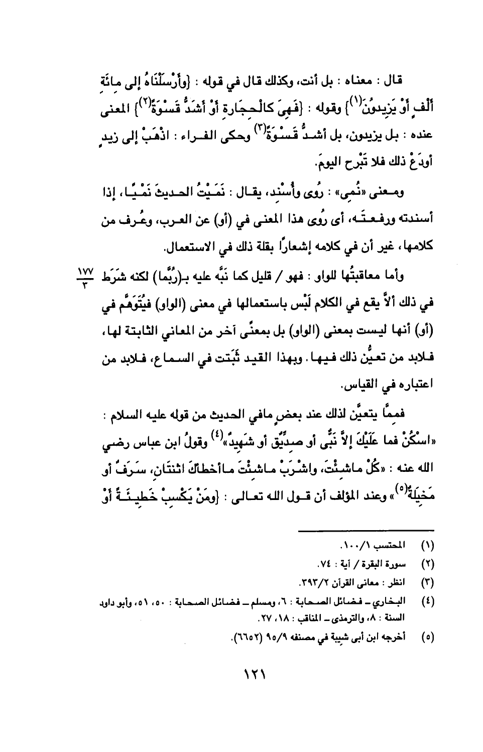 ومعنى "نمي" روى وأسند، يقال: نميت الحديث نميًا، إذا أسندته ورفعته، أي روى هذا المعنى في (أو) عن العرب، وعرف من كلامها، غير أن في كلامه إشعارًا بقلة ذلك في الاستعمال.