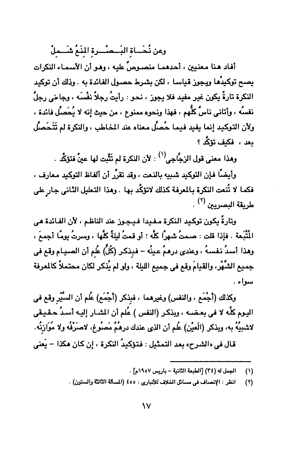 (¬2) انظر: الإنصاف في مسائل الخلاف للأنباري: 455 (المسألة الثالثة والستون).