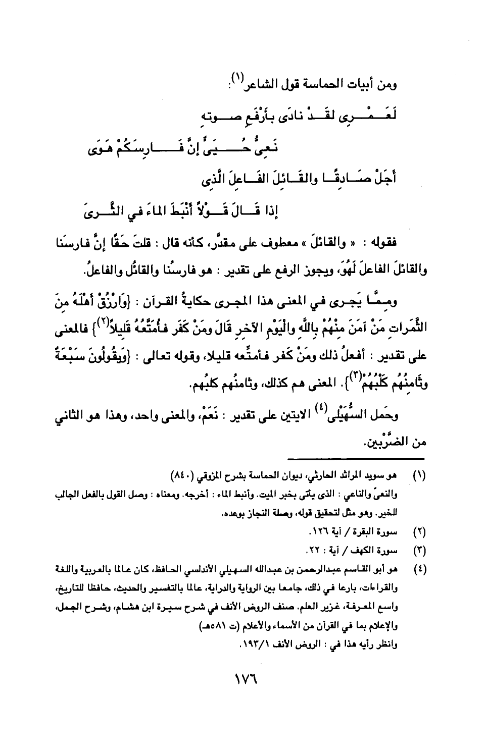 ومما يجرى في المعنى هذا المجرى حكاية القرآن: } وارزق أهله من الثمرات من آمن منهم بالله واليوم الآخر قال ومن كفر فأمتعه قليلاً {فالمعنى على تقدير: أفعل ذلك ومن كفر فأمتعه قليلا، وقوله تعالى: } ويقولون سبعة وثامنهم كلبهم {. المعنى هم كذلك، وثامنهم كلبهم.