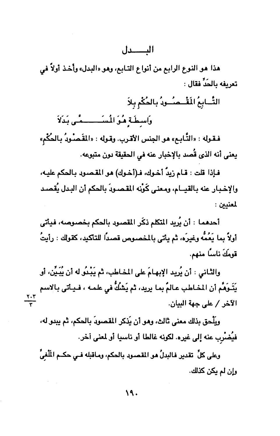 هذا هو النوع الرابع من أنواع التابع، وهو "البدل" وأخذ أولاً في تعريفه بالحد فقال: