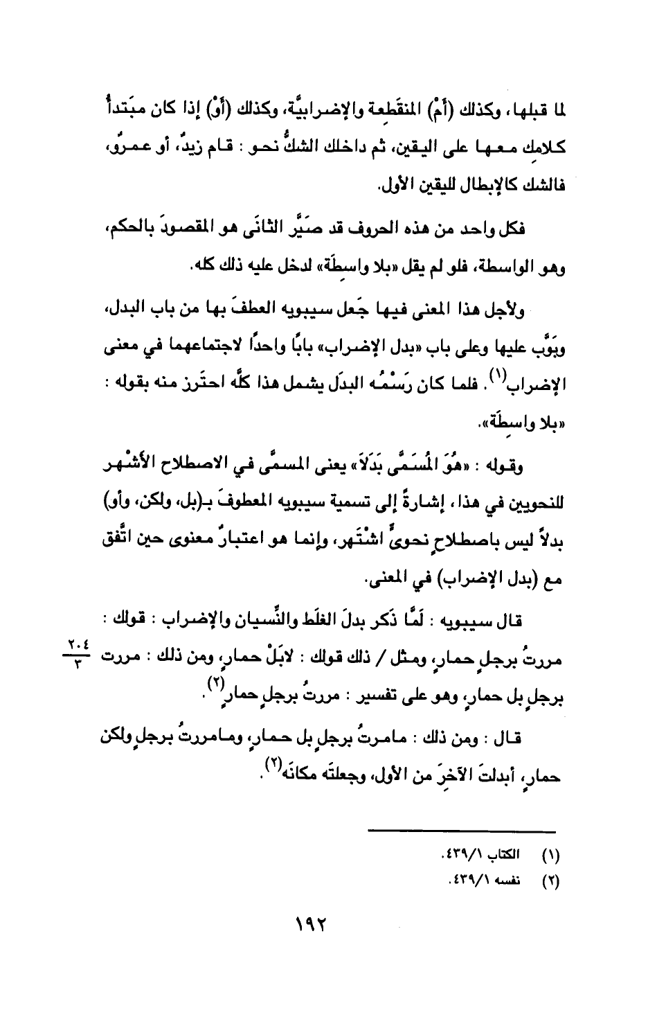 قال: ومن ذلك: ما مرت برجلٍ بل حمارٍ، وما مررت برجلٍ ولكن حمارٍ، أبدلت الآخر من الأول، وجعلته مكانه.