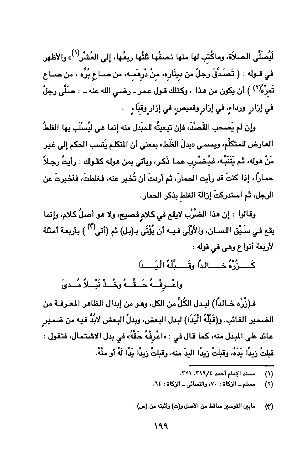 وإن لم يصحب القصد، فإن تبعيته للمبدل منه إنما هي ليسلب بها الغلط العارض للمتكلم، ويسمى "بدل الغلط" بمعنى أن المتكلم ينسب الحكم إلى غير من هوله، ثم يتنبه، فيضرب عما ذكر، ويأتي بمن هوله كقولك: رأيت رجلاً حمارًا، إذا كنت قد رأيت الحمار، ثم أردت أن تخبر عنه، فغلطت، فأخبرت عن الرجل، ثم استدركت إزالة الغلط بذكر الحمار.