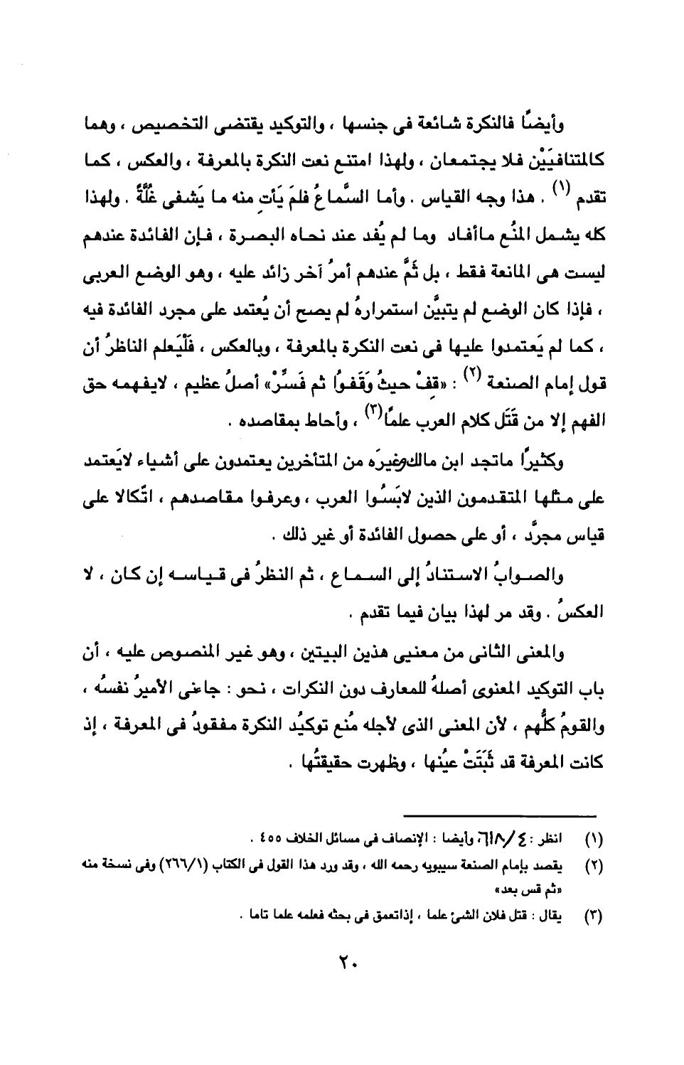 وكثيراً ما تجد ابن مالك وغيره من التأخرين يعتمدون على أشياء لا يعتمد على مثلها المتقدمون الذين لابسوا العرب، وعرفوا مقاصدهم، اتكالا على قياس مجرد، أو على حصول الفائدة أو غير ذلك.