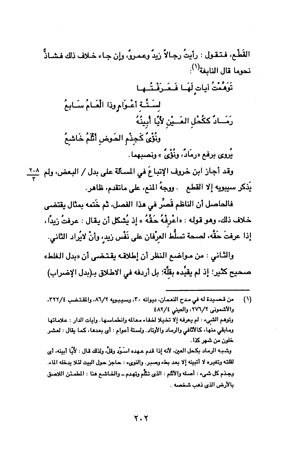 القطع، فتقول: رأيت رجالاً زيد وعمرو، وإن جاء خلاف ذلك فشاذ نحو ما قال النابغة: