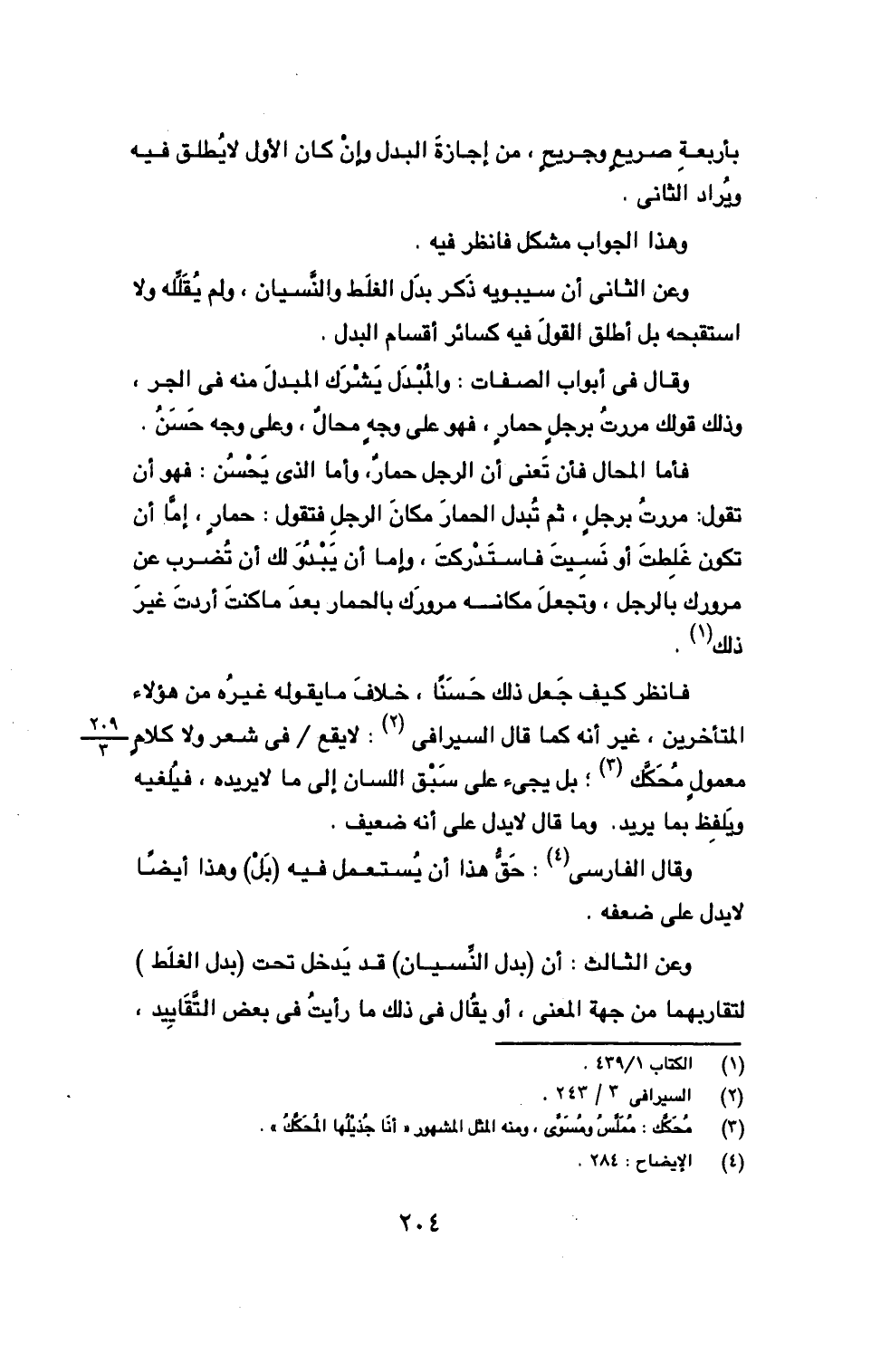 وعن الثاني أن سيبويه ذكر بدل الغلط والنسيان، ولم يقلله ولا استقبحه بل أطلق القول فيه كسائر أقسام البدل.