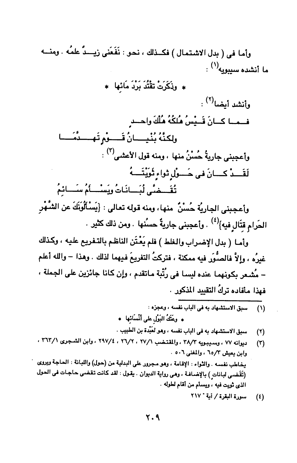 وأعجبني الجارية حسن منها، ومنه قوله تعالى: } يسألونك عن الشهر الحرام قتالٍ فيه {. وأعجبني جارية حسنها، ومن ذلك كثير.