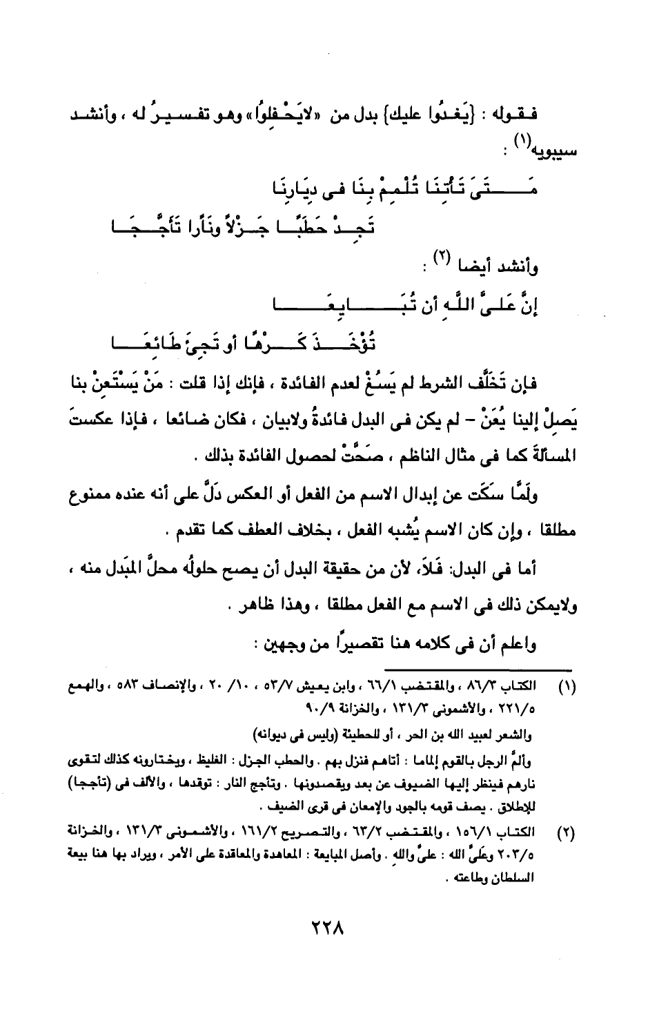 ولما سكت عن إبدال الاسم من الفعل أو العكس دل على أنه عنده ممنوع مطلقا، وإن كان الاسم يشبه الفعل، بخلاف العطف كما تقدم.
