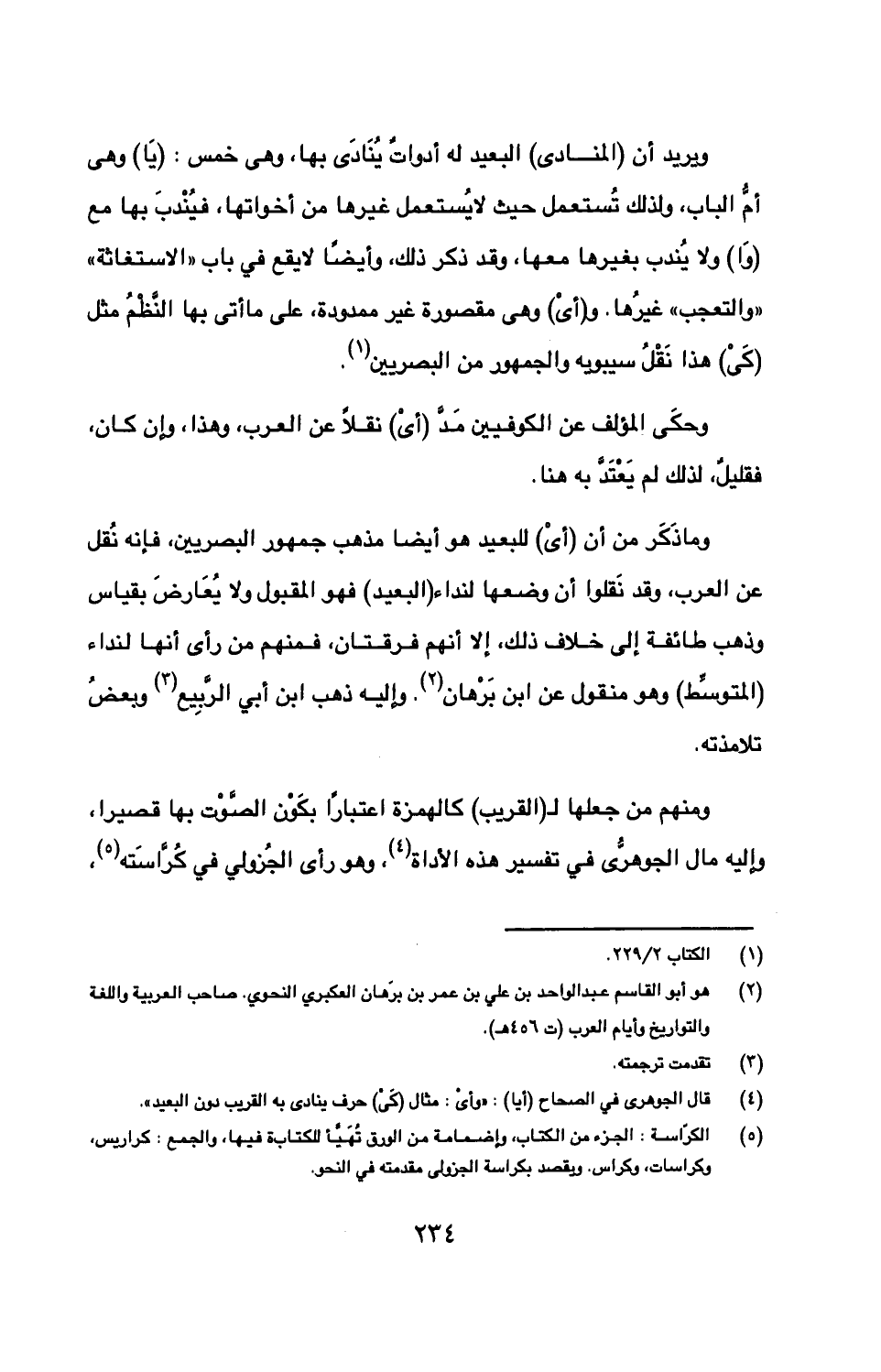 وما ذكر من أن (أي) للبعيد هو أيضا مذهب جمهور البصريين، فإنه نقل عن العرب، وقد نقلوا أن وضعها لنداء (البعيد) فهو المقبول ولا يعارض بقياس وذهب طائفة إلى خلاف ذلك، إلا أنهم فرقتان، فمنهم من رأى أنها لنداء (المتوسط) وهو منقول عن ابن برهان. وإليه ذهب ابن أبي الربيع وبعض تلامذته.