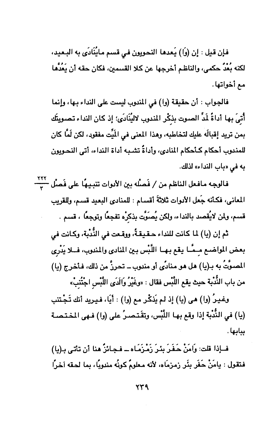 فإذا قلت: وامن حفر بئر زمزماه - فجائًز هنا أن تأتي بـ (يا) فتقول: يا من حفر بئر زمزماه، لأنه معلوم كونه مندوبًا، بما لحقه آخرًا