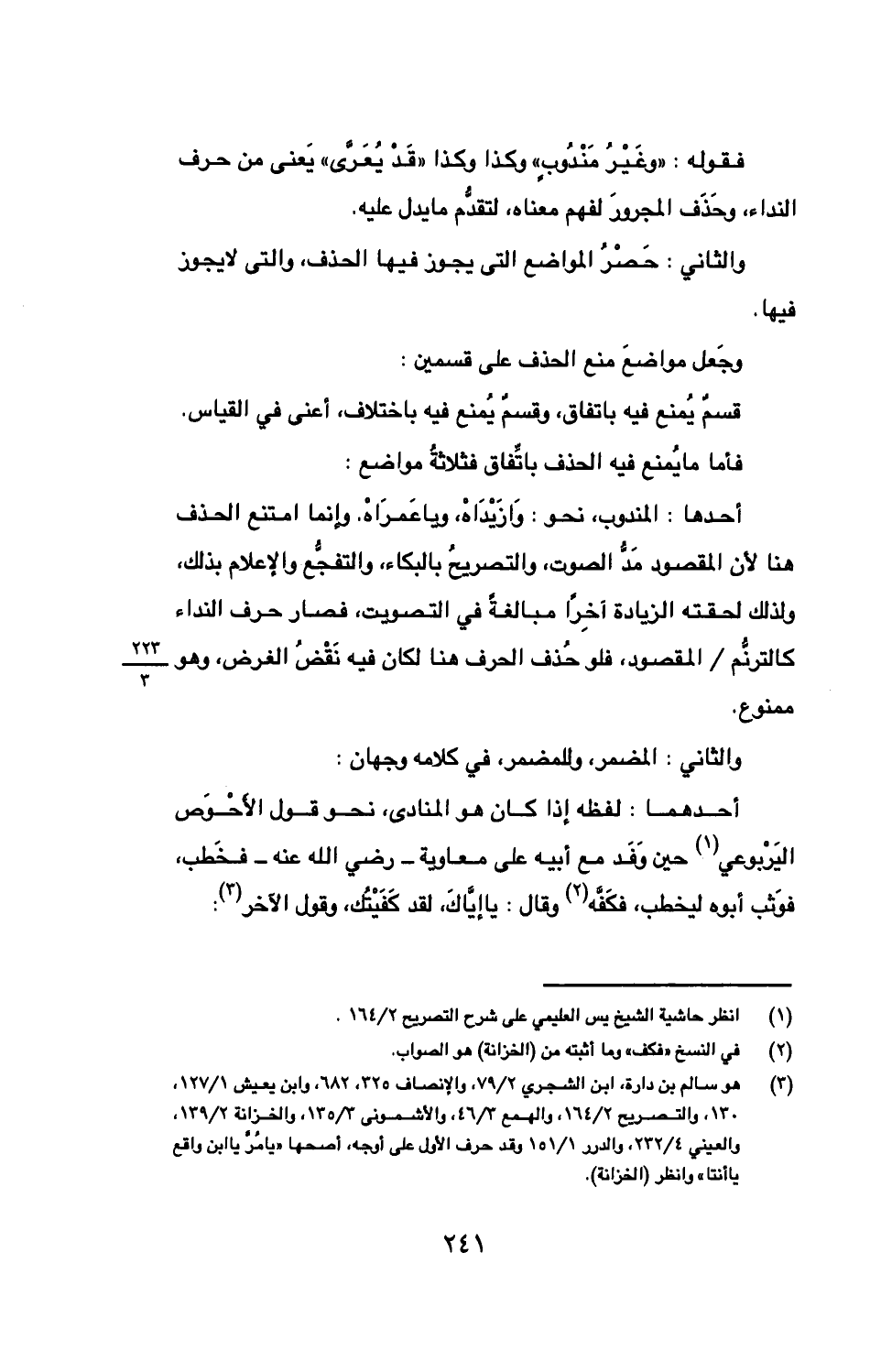 والثاني: حصر المواضع التي يجوز فيها الحذف، والتي لا يجوز فيها.