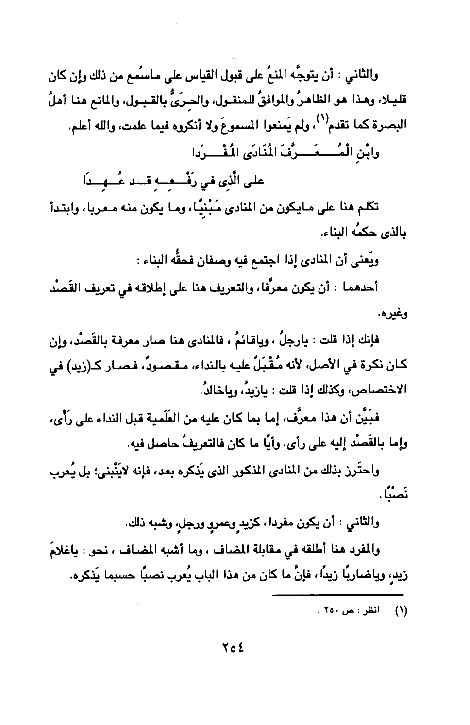 تكلم هنا على ما يكون من المنادى مبنيًا، وما يكون منه معربا، وابتدأ بالذي حكمه البناء.