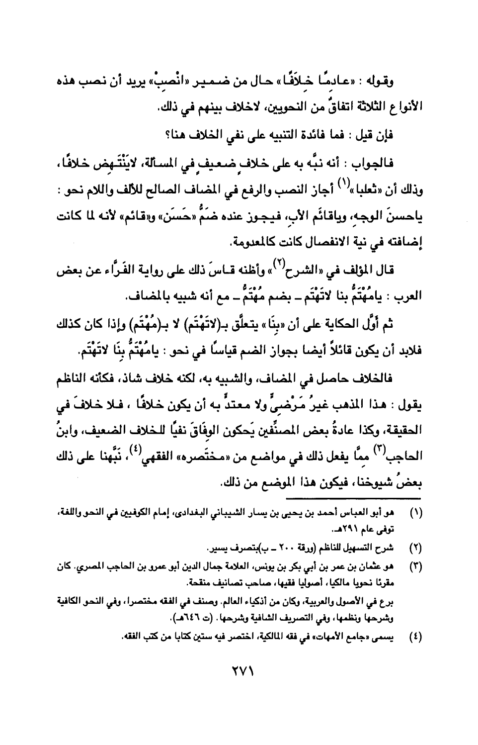 فالخلاف حاصل في المضاف، والشبيه به، لكنه خلاف شاذ، فكأنه الناظم يقول: هذا المذهب غير مرضى ولا معتد به أن يكون خلافًا، فلا خلاف في الحقيقة، وكذا عادة بعض المصنفين يحكون الوفاق نفيًا للخلاف الضعيف، وابن الحاجب مما يفعل ذلك في مواضع من "مختصره" الفقهي، نبهنا على ذلك بعض شيوخنا، فيكون هذا الموضع من ذلك.