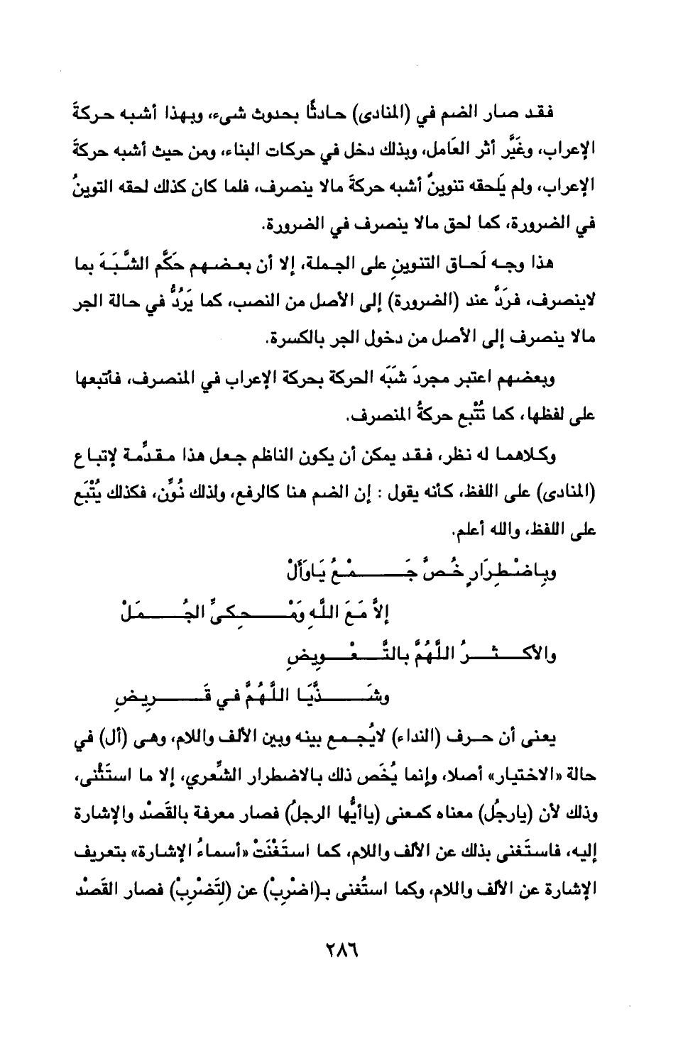 وباضطرار خص جمع يا وأل ... إلا مع الله ومحكي الجمل