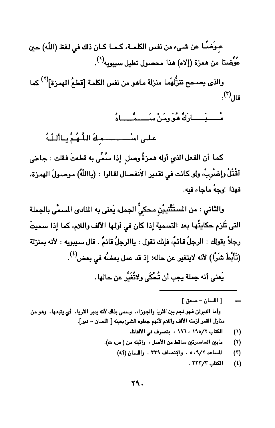 عوضًا عن شيء من نفس الكلمة، كما كان ذلك في لفظ (الله) حين عوضتا من همزة (إلاه) هذا محصول تعليل سيبويه.