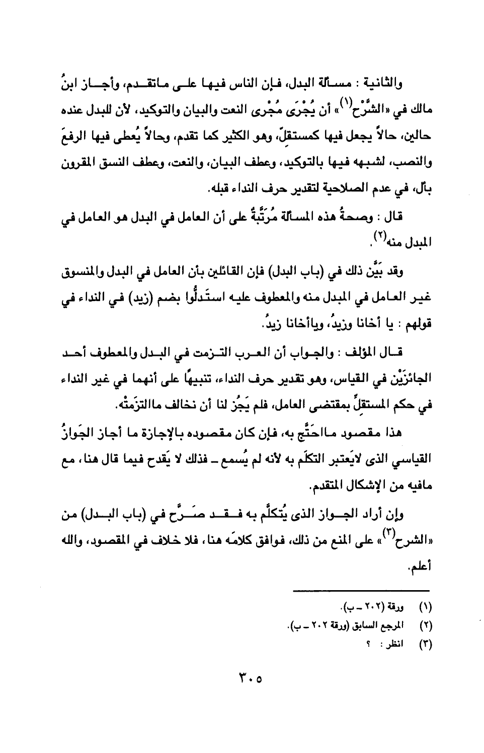 وقد بين ذلك في (باب البدل) فإن القائلين بأن العامل في البدل والمنسوق غير العامل في المبدل منه والمعطوف عليه استدلوا بضم (زيد) في النداء في قولهم: يا أخانا وزيد، ويا أخانا زيد.