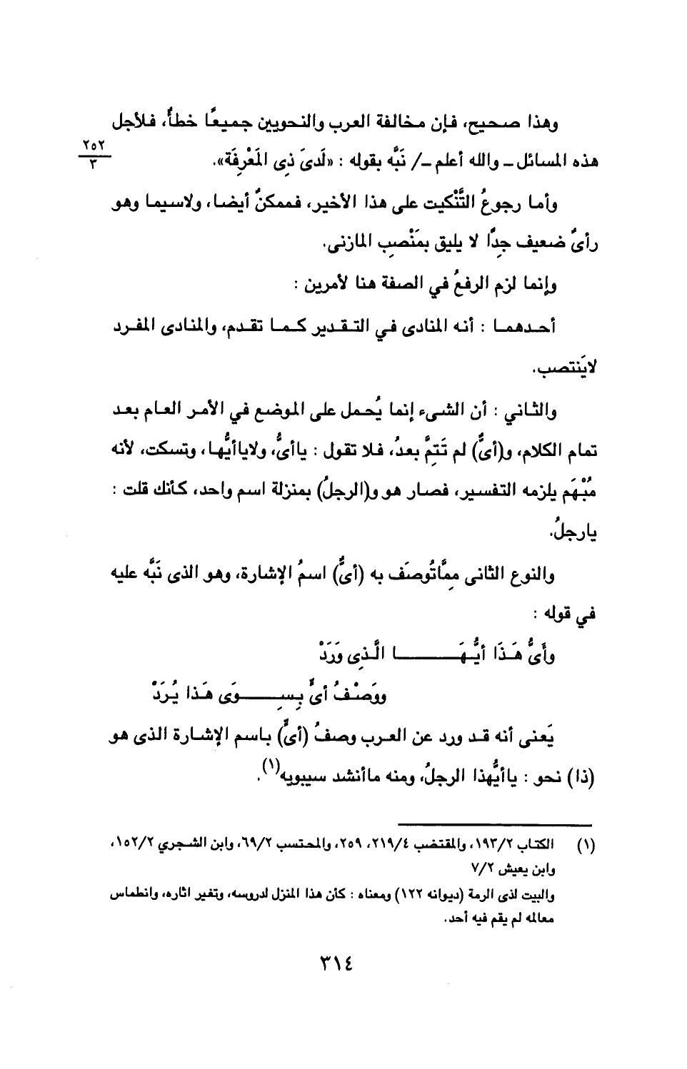 يعني أنه قد ورد عن العرب وصف (أي) باسم الإشارة الذي هو (ذا) نحو: يا أيهذا الرجل، ومنه ما أنشد سيبويه.