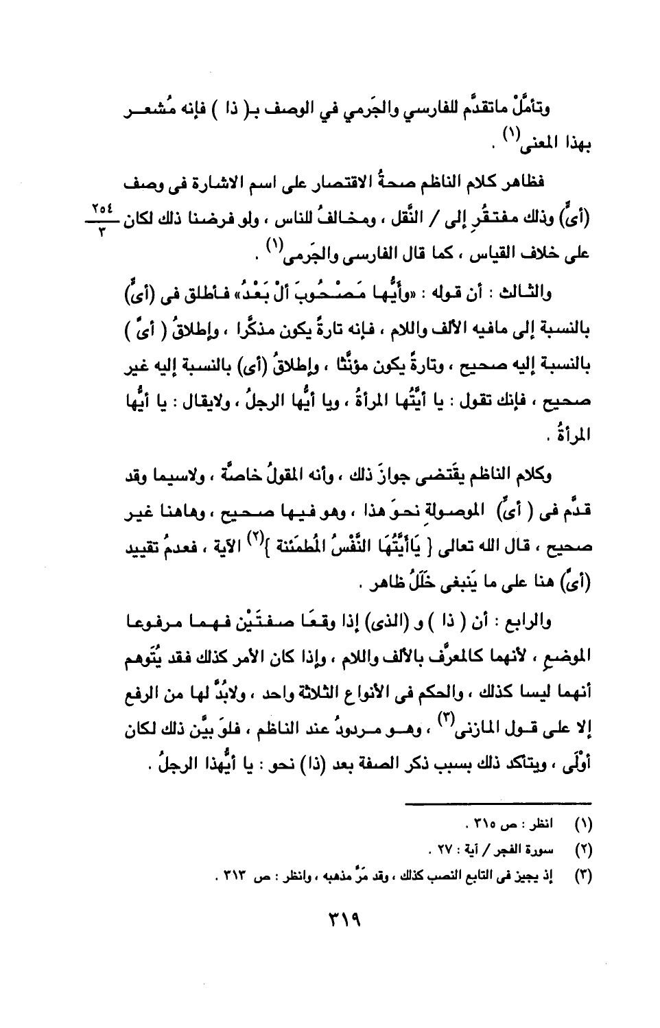 وتأمل ما تقدم للفارسي والجرمي في الوصف بـ (ذا) فإنه مشعر بهذا المعنى.
