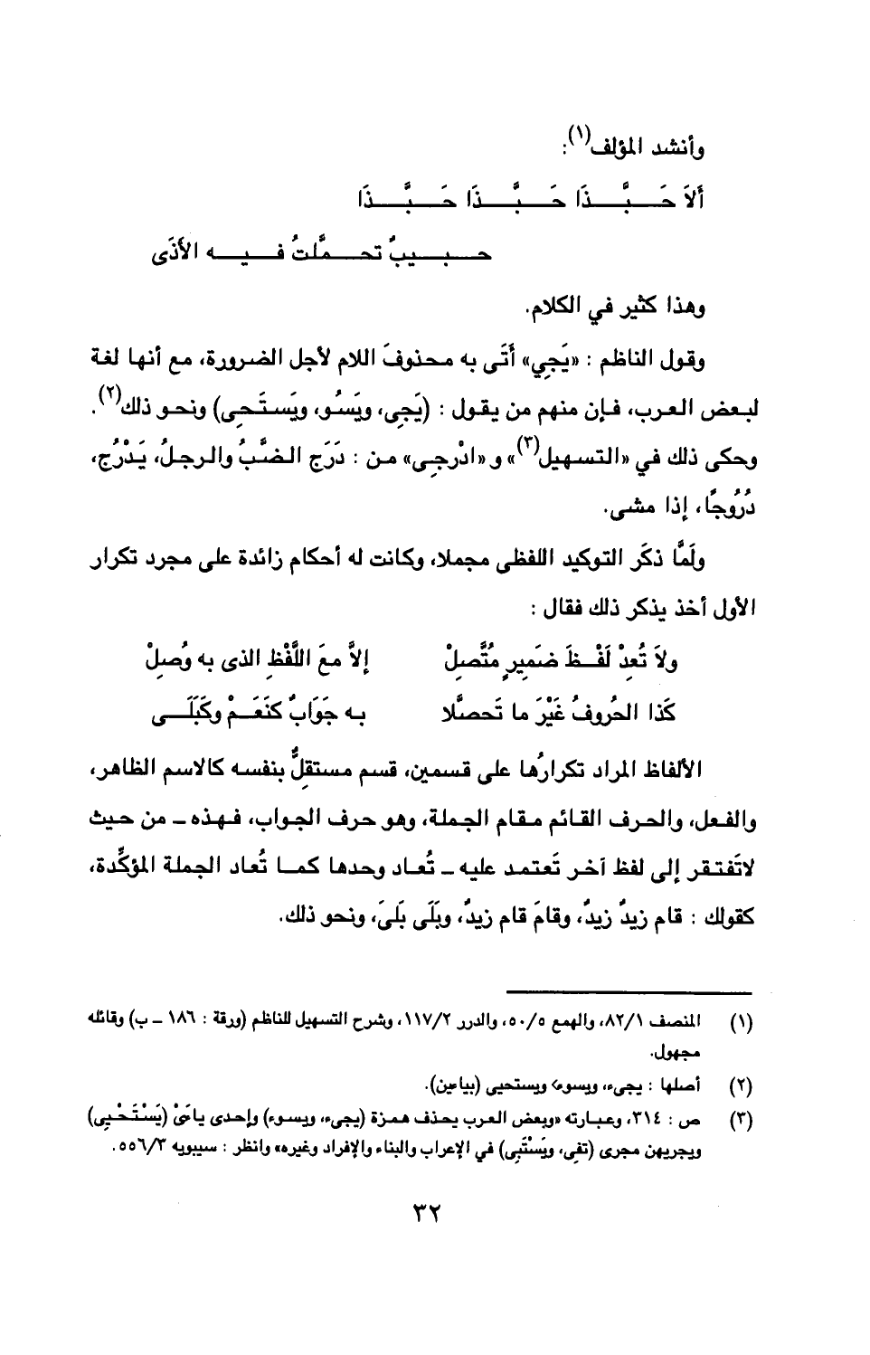 (¬3) ص: 314، وعبارته "وبعض العرب يحذف همزة (يجئ، ويسوء) وإحدى ياءى (يستحيى) ويجريهن مجرى (تفى، ويستيى) في الإعراب والبناء والإفراد وغيره" وانظر: سيبويه 3/ 556.