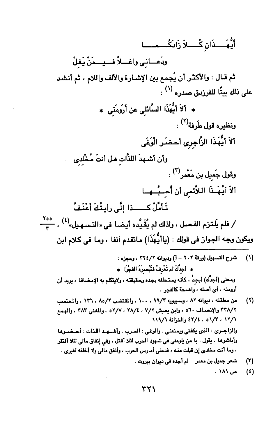 ثم قال: والأكثر أن يجمع بين الإشارة والألف واللام، ثم أنشد على ذلك بيتًا للفرزدق صدره:
