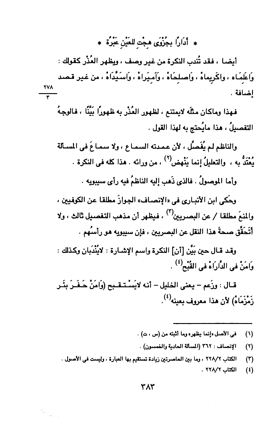 وقد قال حين بين [أن] النكرة واسم الإشارة: لا يندبان وكذلك: وامن في الداراه في القبح.