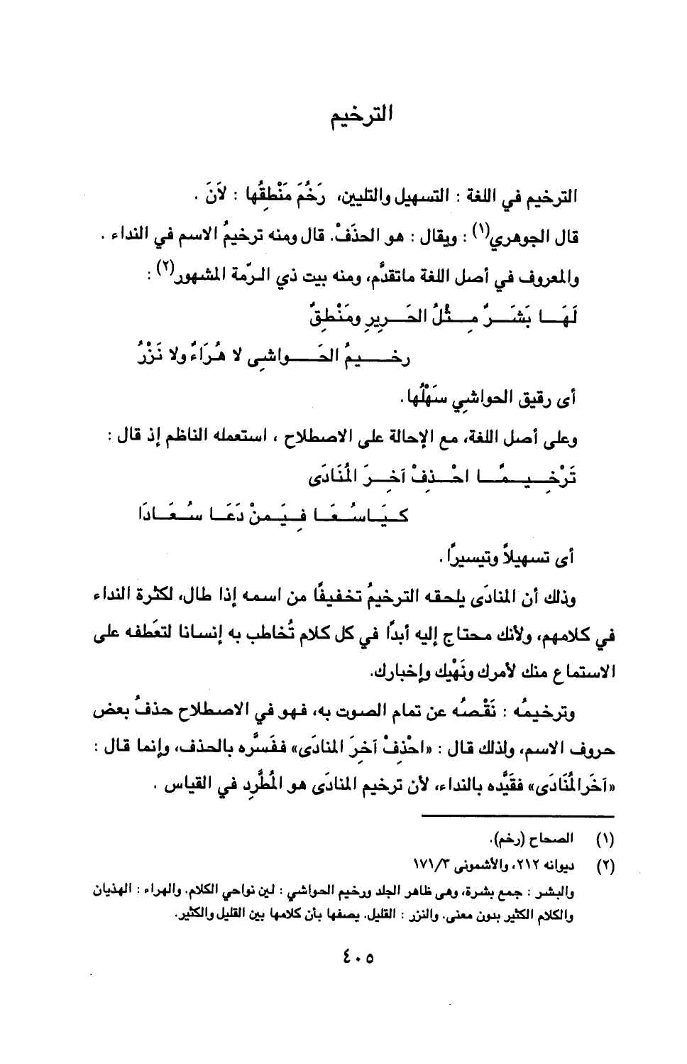 قال الجوهري: ويقال: هو الحذف. قال ومنه ترخيم الاسم في النداء.