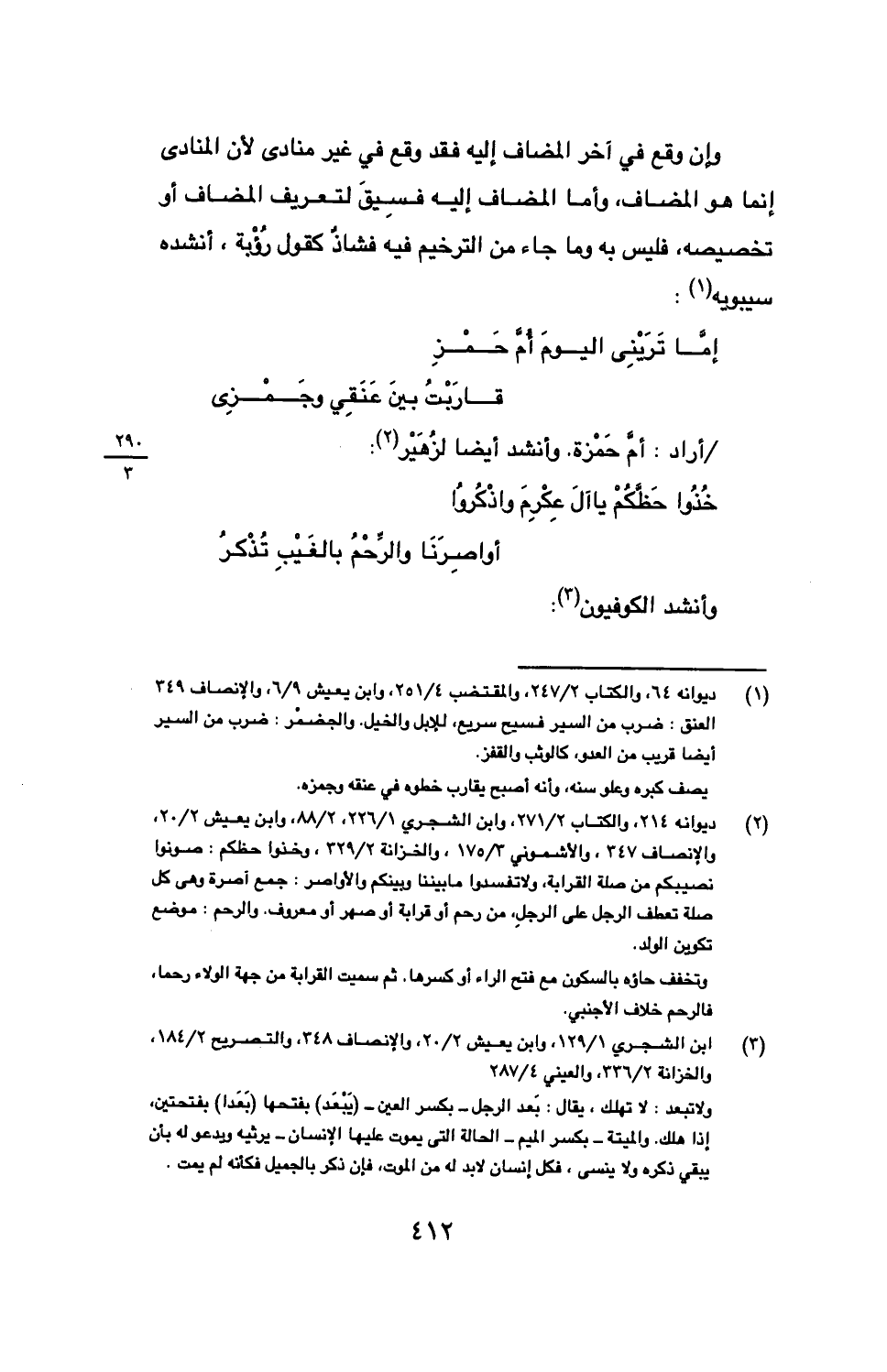 وإن وقع في آخر المضاف إليه فقد وقع في غير منادى لأن المنادى إنما هو المضاف، وأما المضاف إليه فسيق لتعريف المضاف أو تخصيصه، فليس به وما جاء من الترخيم فيه فشاد كقول رؤبة، أنشده سيبويه: