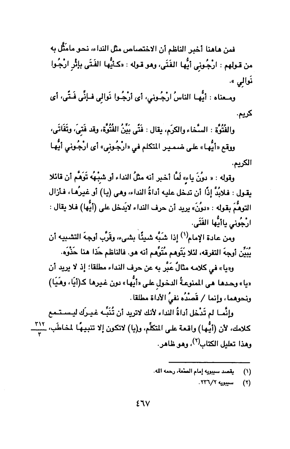 وأنما لم تدخل أداة النداء لأنك لا تريد أن تنبه غيرك ليستمع كلامك, لأن (أيها) واقعة على المتكلم, و (يا) لا تكون إلا تنبيها لمخاطب, وهذا تعليل الكتاب, وهو ظاهر.