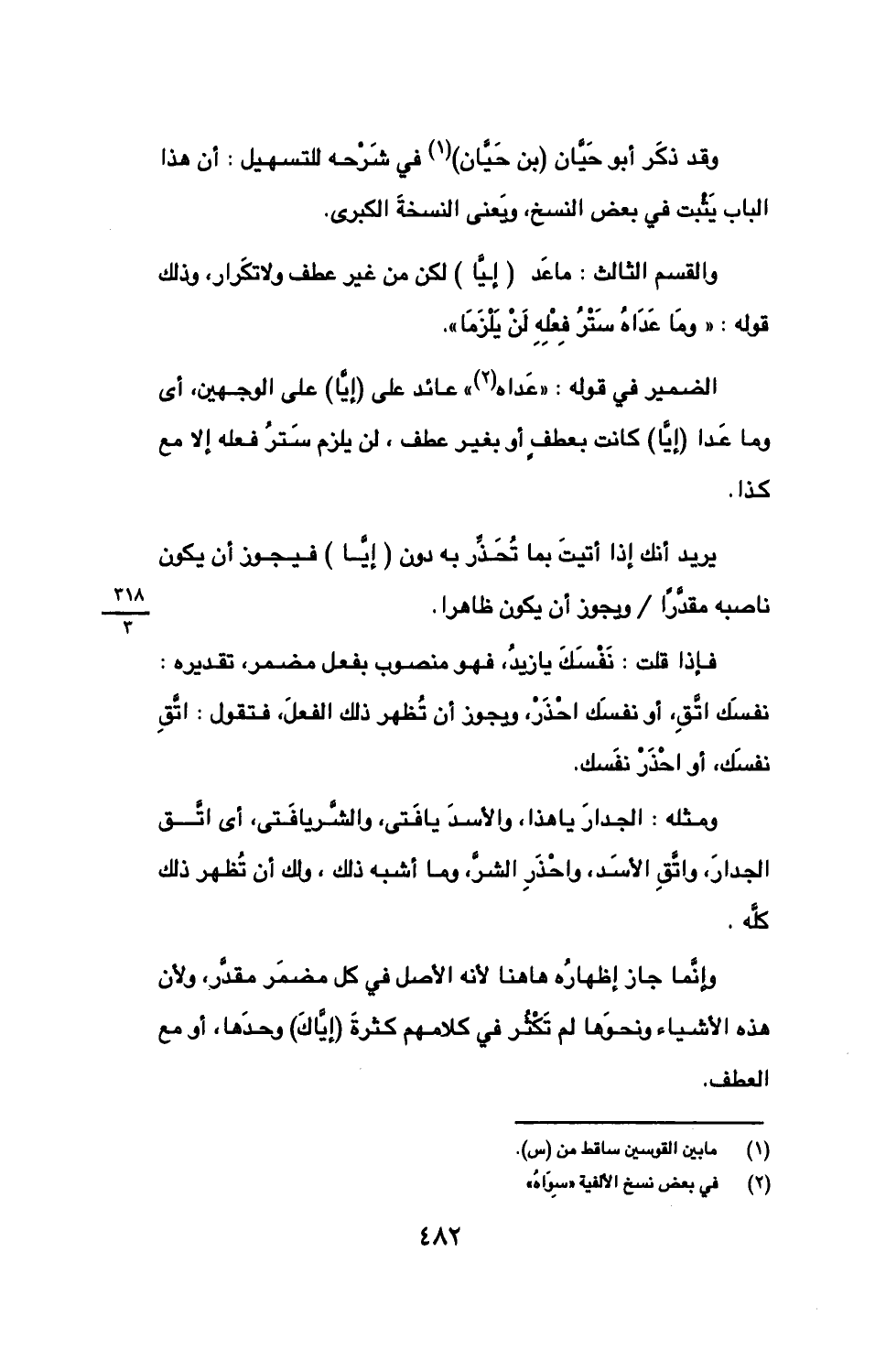 وقد ذكر أبو حيان (بن حيان) في شرحه للتسهيل: أن هذا الباب يثبت في بعض النسخ, ويعني النسخة الكبرى.