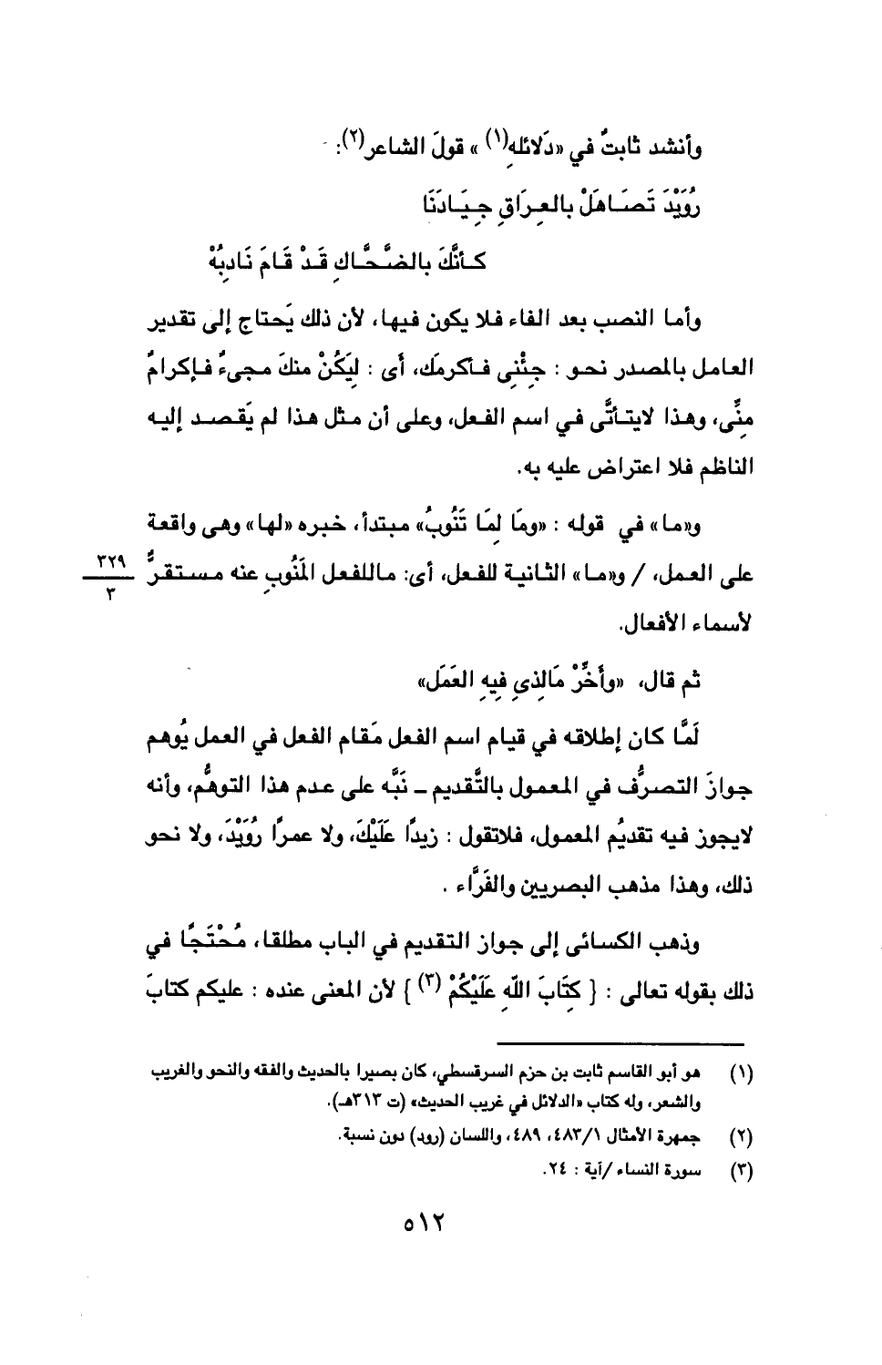 وأنشد ثابت في "دلائله" قول الشاعر: