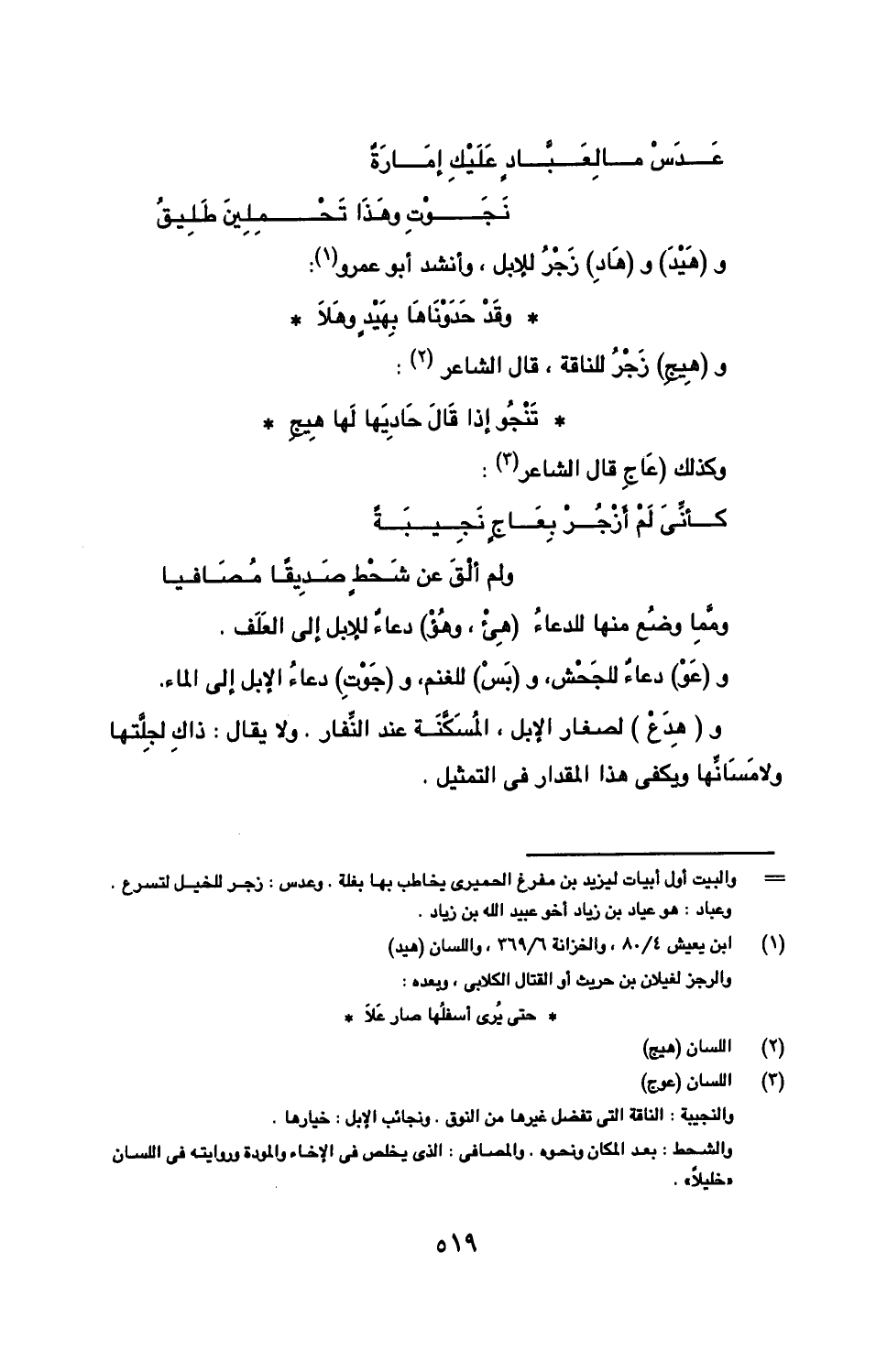 و(هيد) و (هاد) زجر للإبل، وأنشد أبو عمرو: