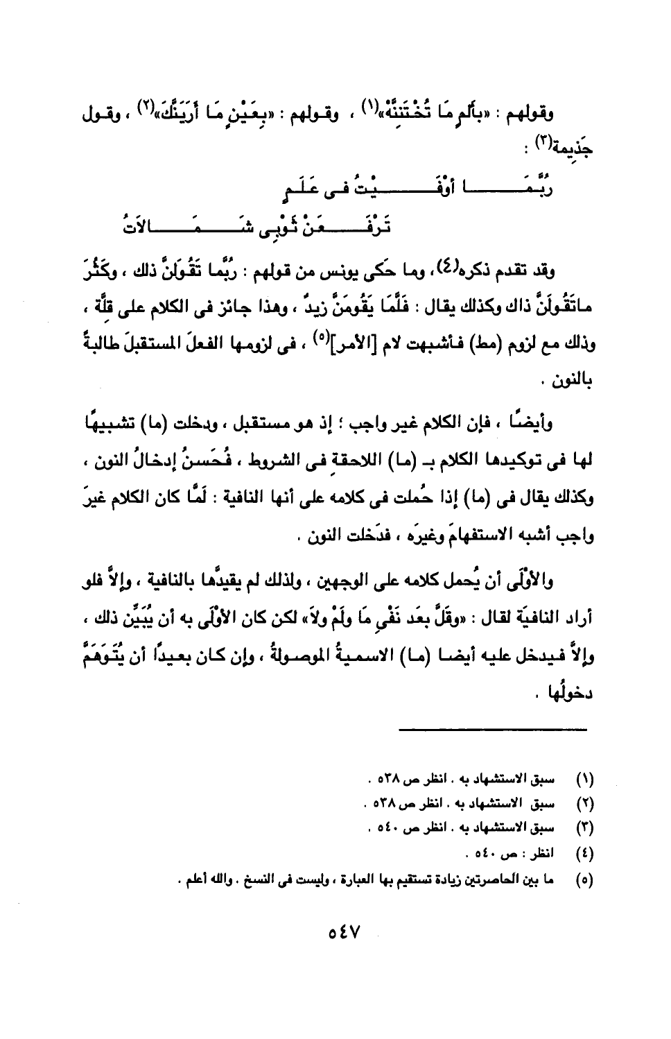 والأولى أن يحمل كلامه على الوجهين، ولذلك لم يقيدها بالنافية، وإلا فلو أراد النافية لقال: "وقل بعد نفي ما ولم ولا" لكن كان الأولى به أن يبين ذلك، وإلا فيدخل عليه أيضا (ما) الاسمية الموصولة، وإن كان بعيدًا أن يتوهم دخولها.