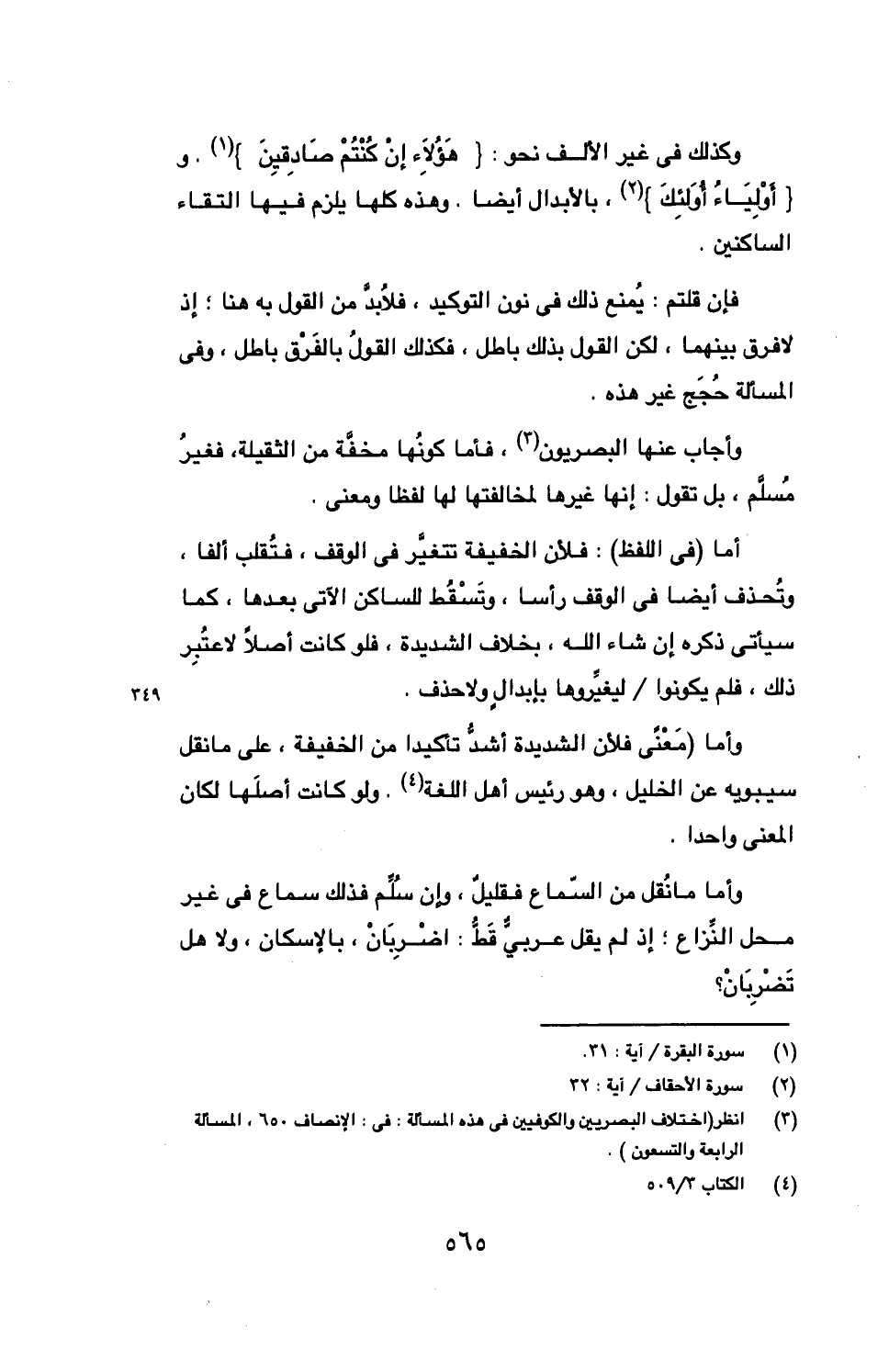 فإن قلتم: يمنع ذلك في نون التوكيد، فلابد من القول من هنا؛ إذ لا فرق بينهما، لكن القول بذلك باطل، فكذلك القول بالفرق باطل، وفي المسألة حجج غير هذه.