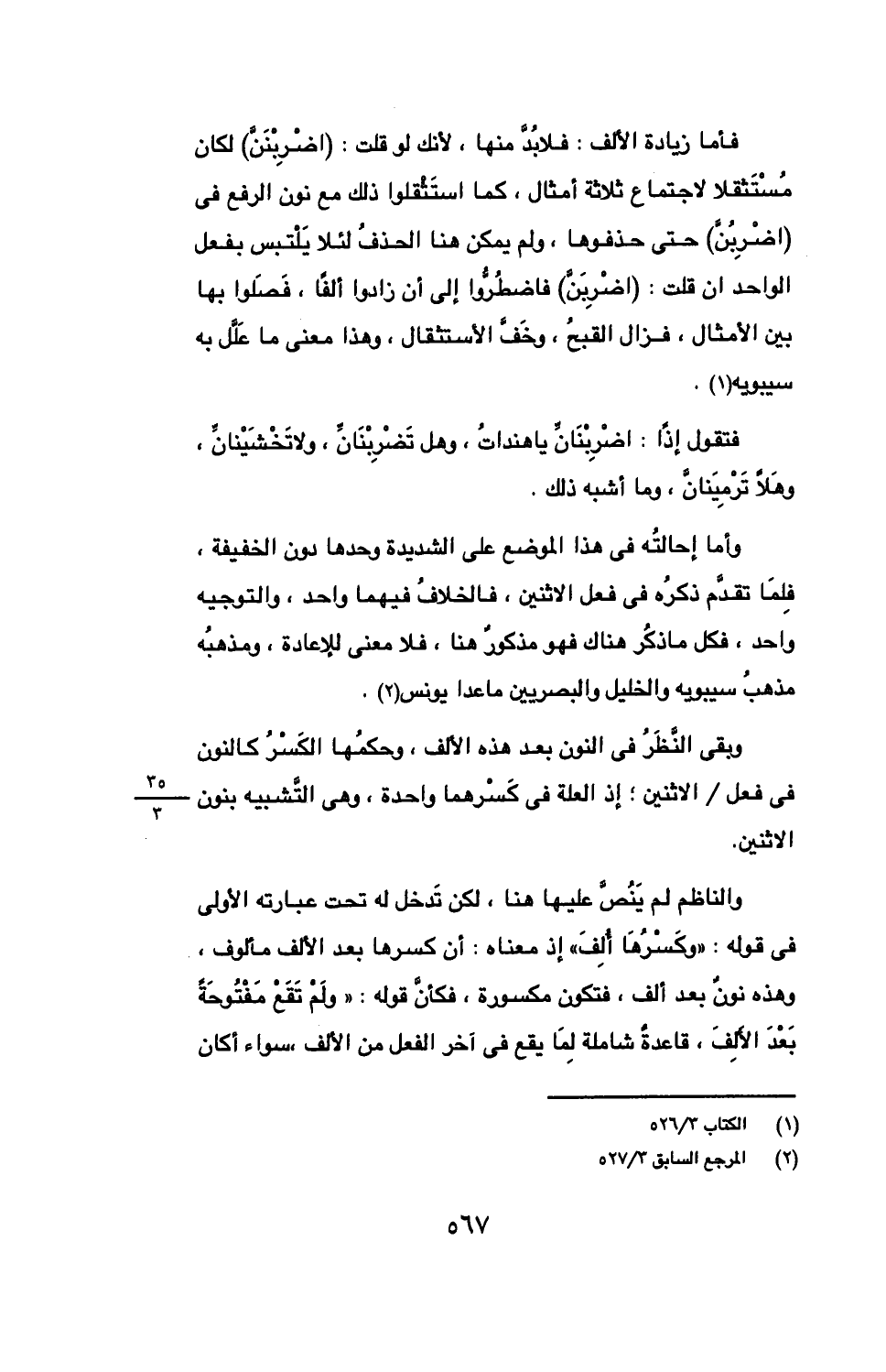 فأما زيادة الألف: فلابد منها، لأنك لو قلت: (اضربننّ) لكان مستثقلا لاجتماع ثلاثة أمثال، كما استثقلوا ذلك مع نون الرفع في (اضربنّ) حتى حذفوها، ولم يمكن هنا الحذف لئلا يلتبس بفعل الواحد إن قلت: (اضربن) فاضطروا إلى أن زادوا ألفًا، فصلوا بها بين الأمثال، فزال القبح، وخف الاستثقال، وهذا معنى ما علل به سيبويه.