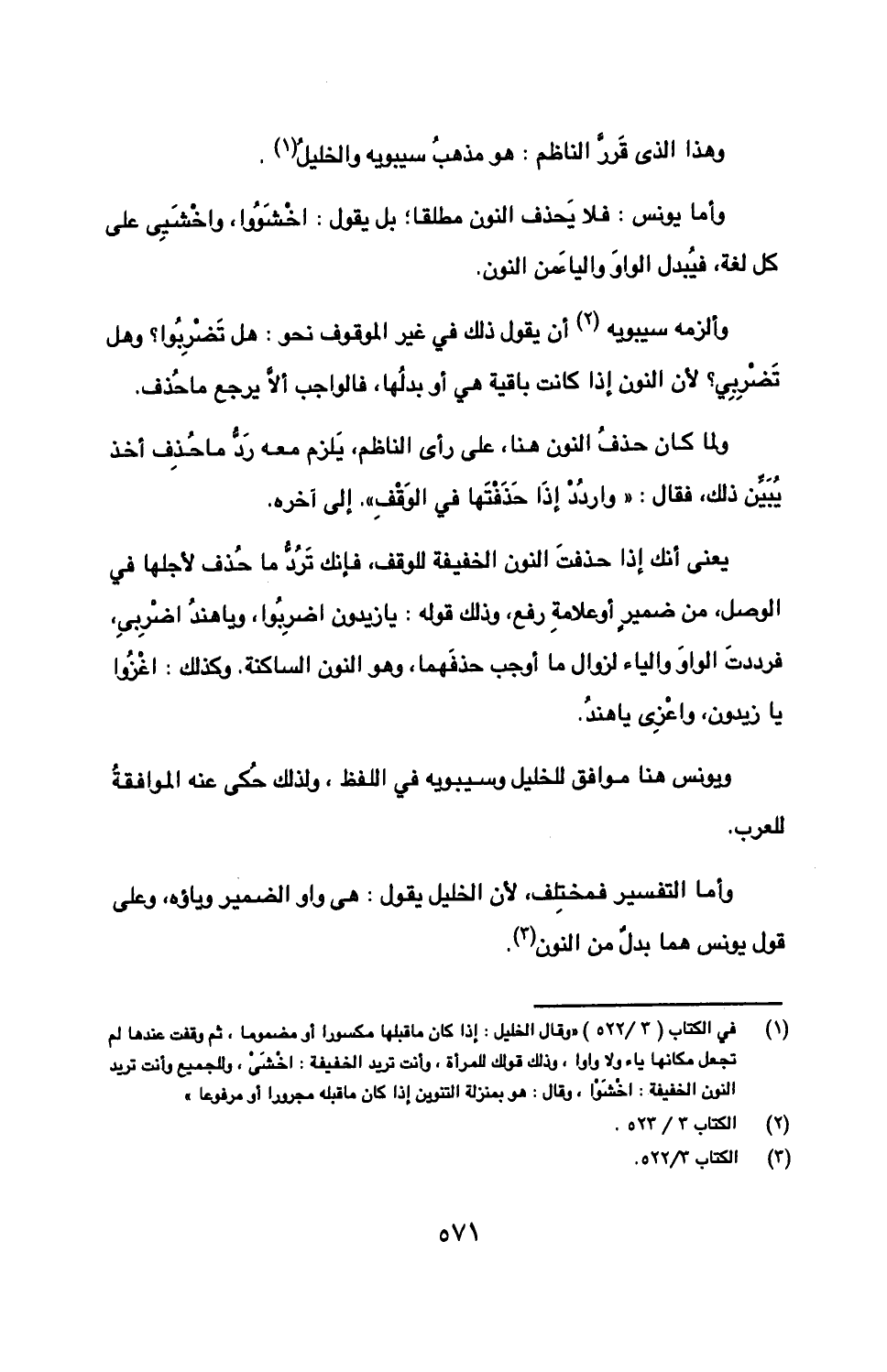 وألزمه سيبويه أن يقول ذلك في غير الموقوف نحو: هل تضربوا؟ وهل تضربي؟ لأن النون إذا كانت باقية هي أو بدلها، فالواجب ألا يرجع ما حذف.