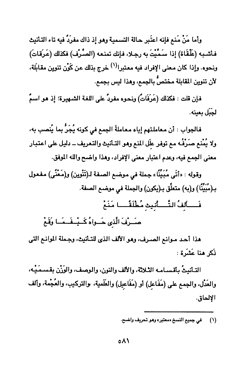 هذا أحد موانع الصرف، وهو الألف الذي للتانيث وجملة الموانع التي ذكر هنا عشرة: