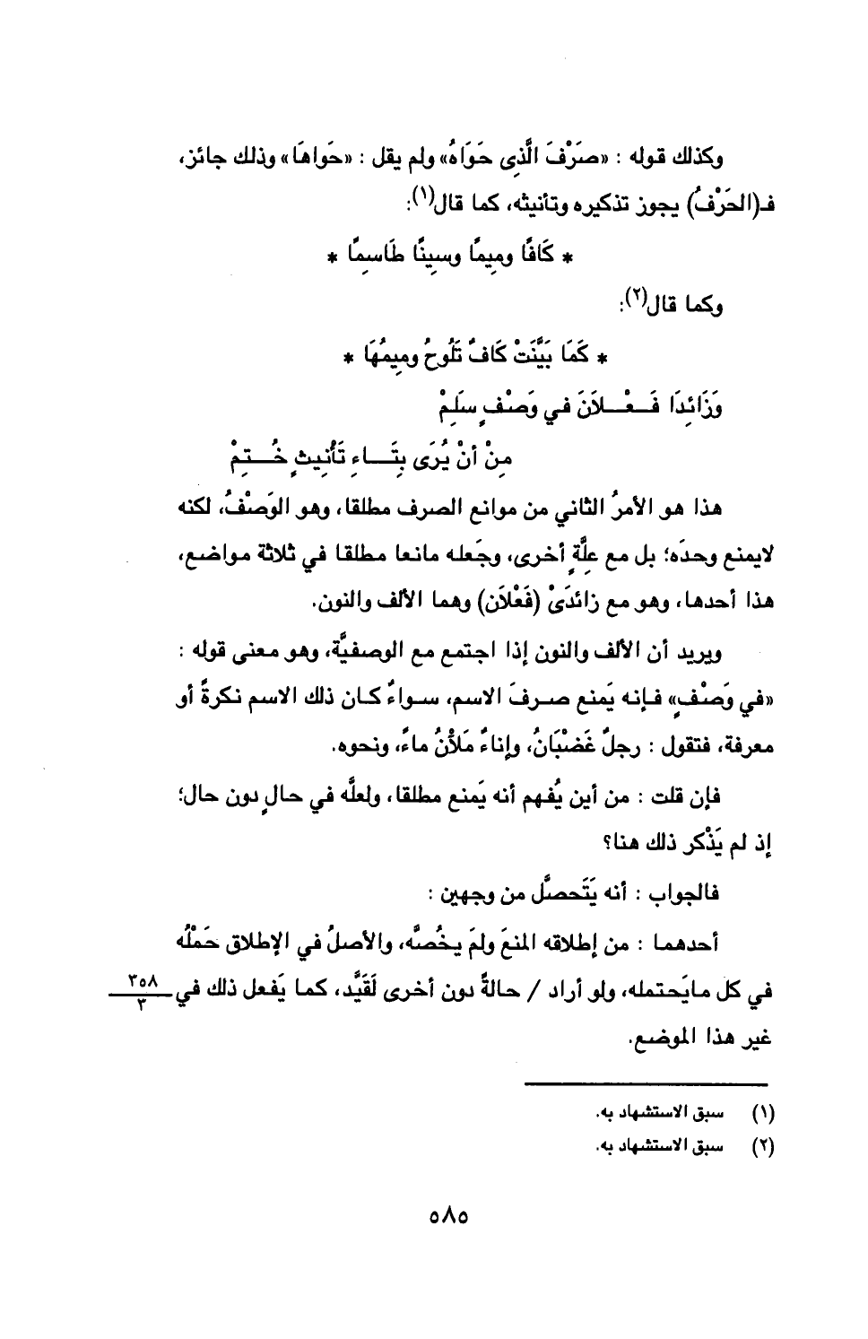 وكذلك قوله: "صرف الذي حواه" ولم يقل: "حواها" وذلك جائز، فـ (الحرف) يجوز تذكيره وتأنيثه، كما قال: