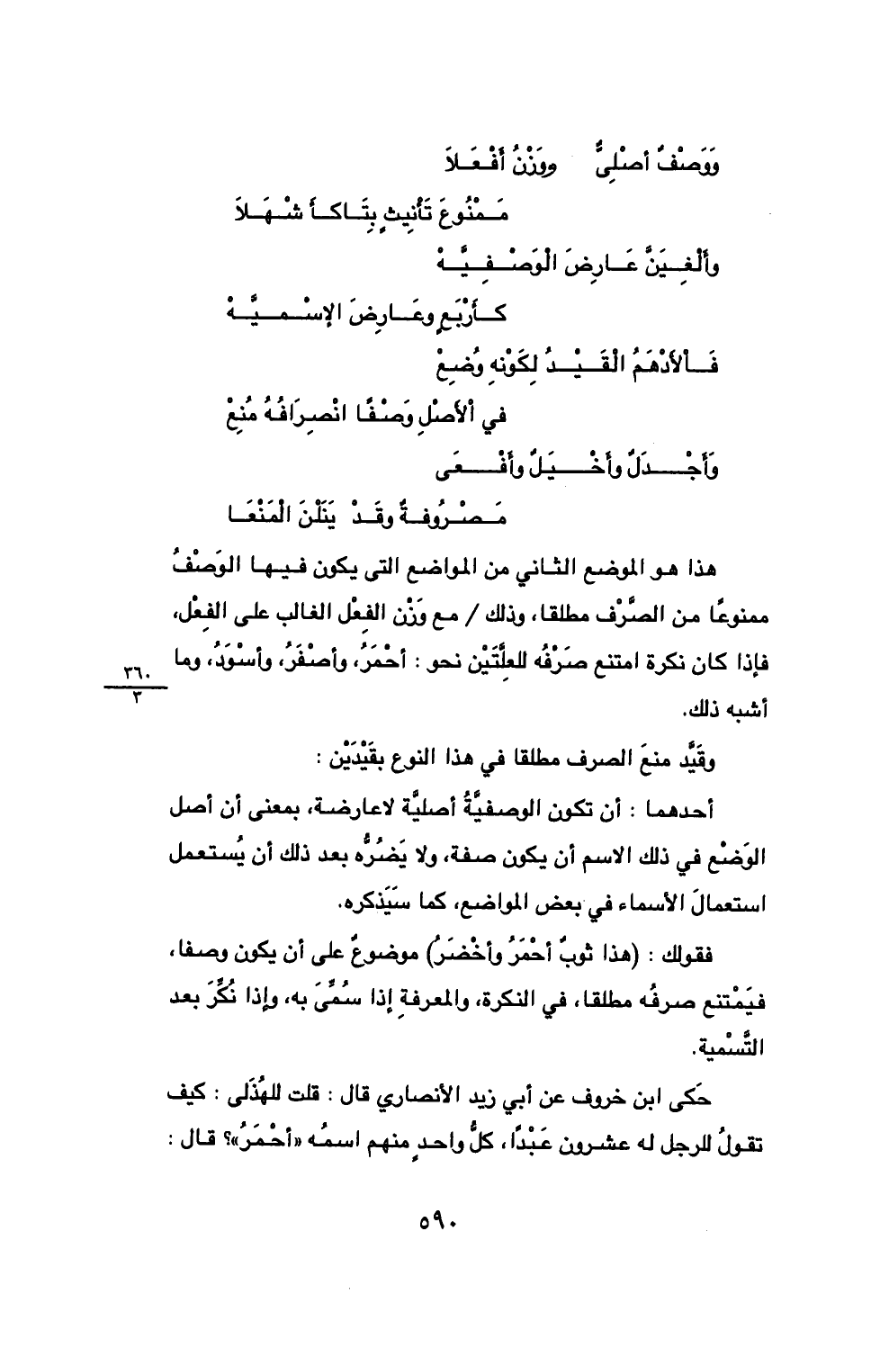 فقول: (هذا ثوب أحمر وأخضر) موضوع على أن يكون وصفا، فيمتنع صرفه مطلقا، في النكرة، والمعرفة إذا سمي به، وإذا نكر بعد التسمية.